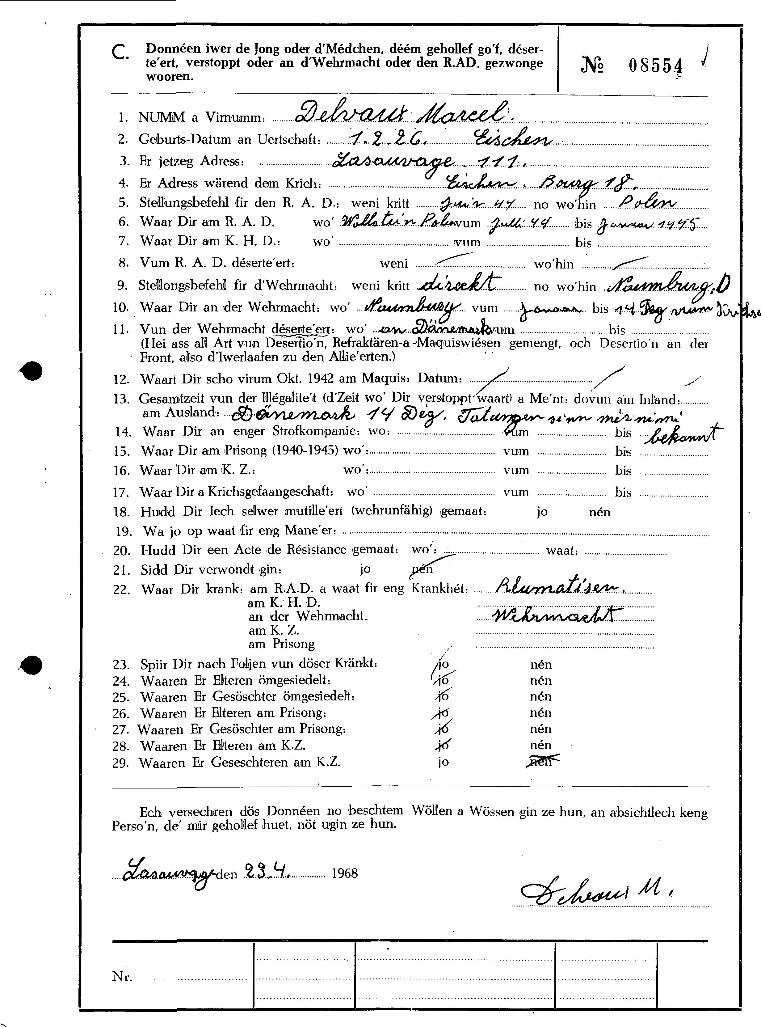 DELVAUX Marcel 01021926 Eischen 1.jpg Télécharger le document 2.jpg Télécharger le document 3.jpg Télécharger le document Divers RAD Wollstein 7_31 BEHM 1.JPG Télécharger le document