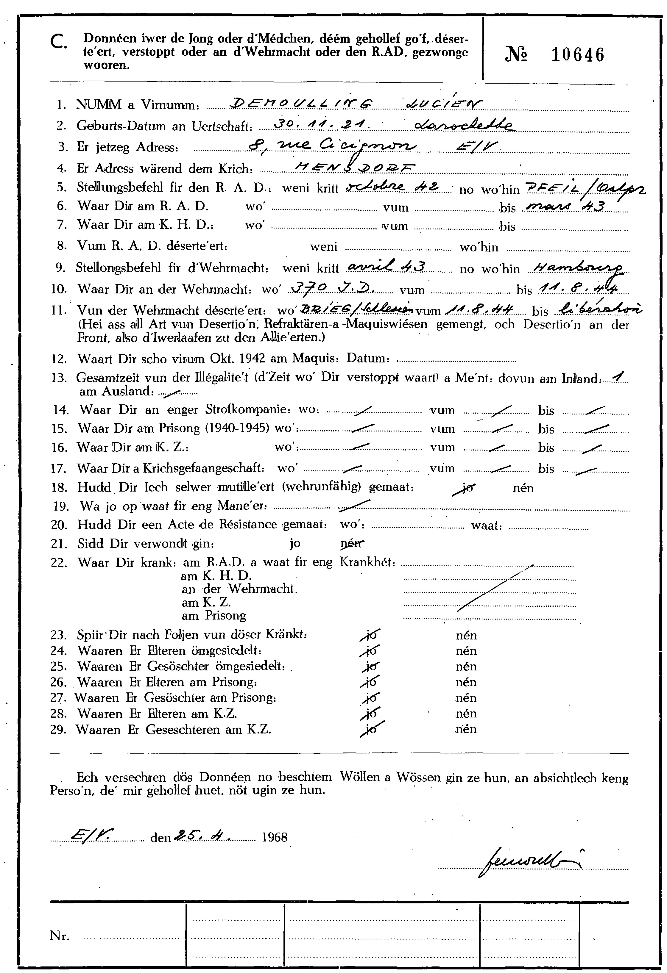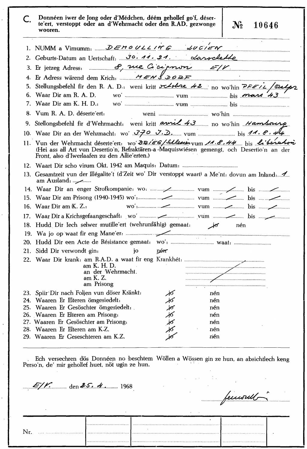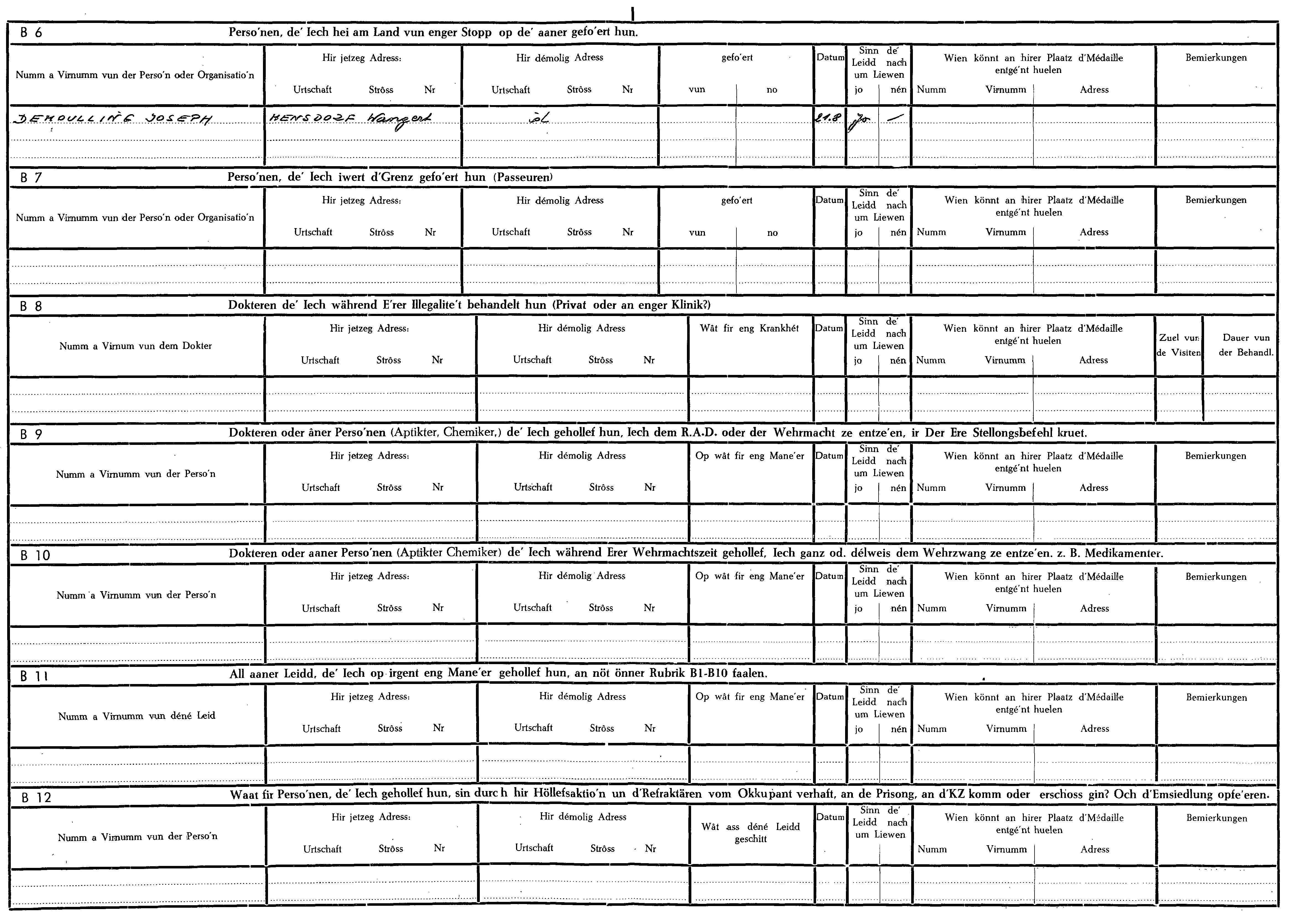 Nom, prénom, nom pendant l'occupation