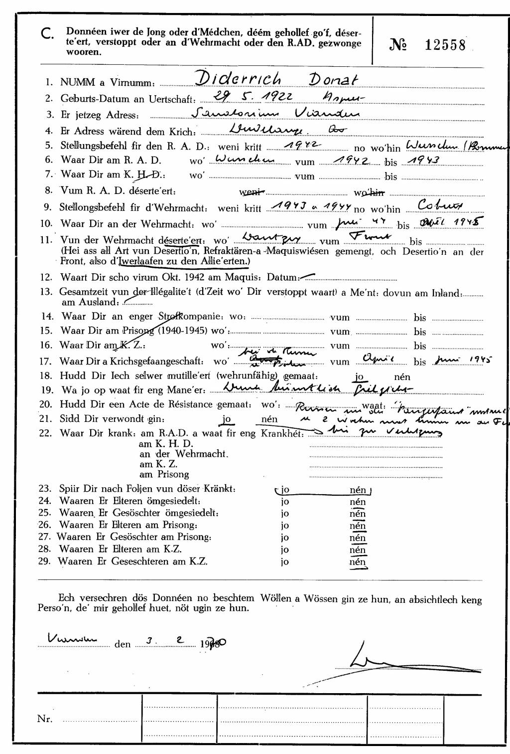 Nom, prénom, nom pendant l'occupation