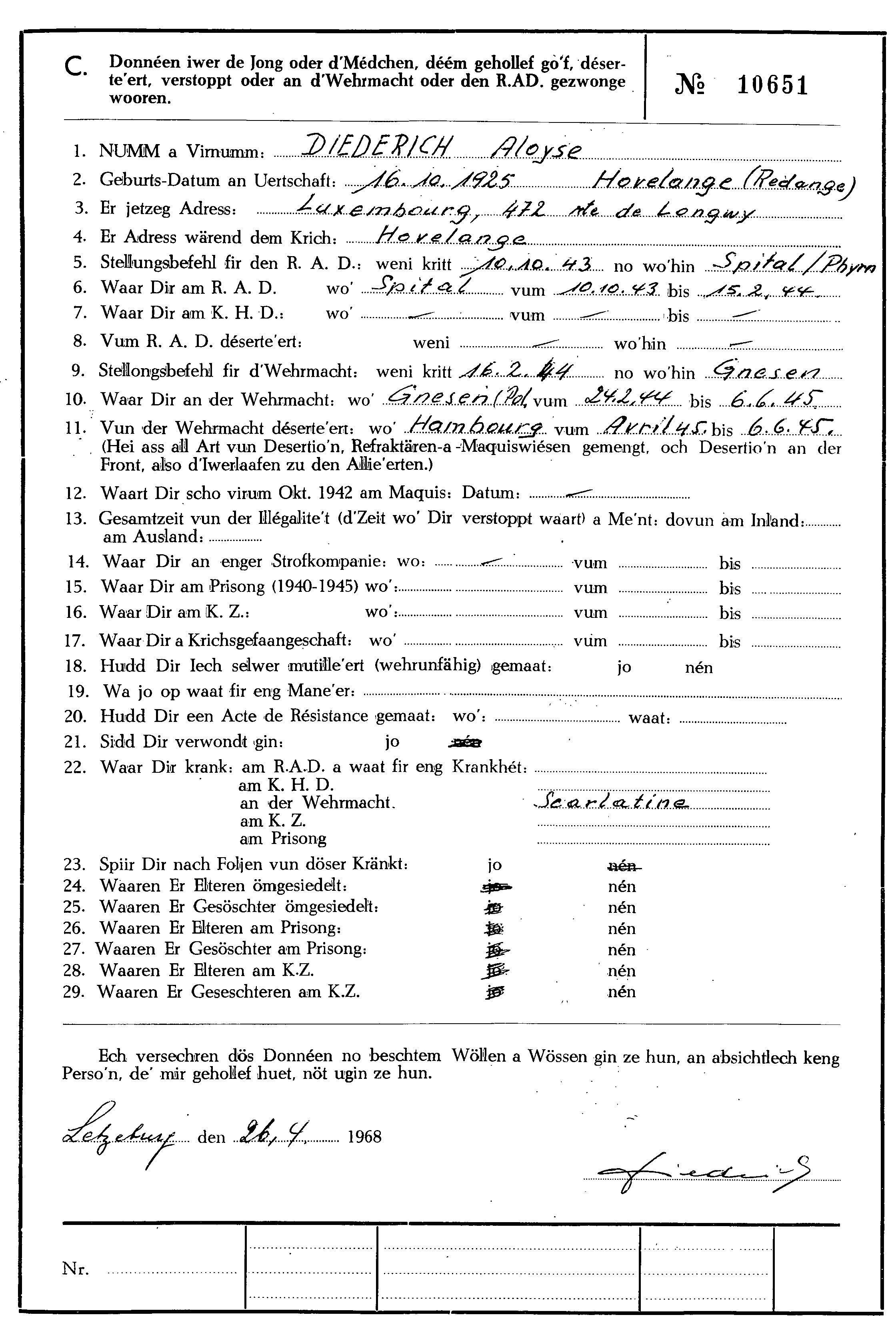 Nom, prénom, nom pendant l'occupation