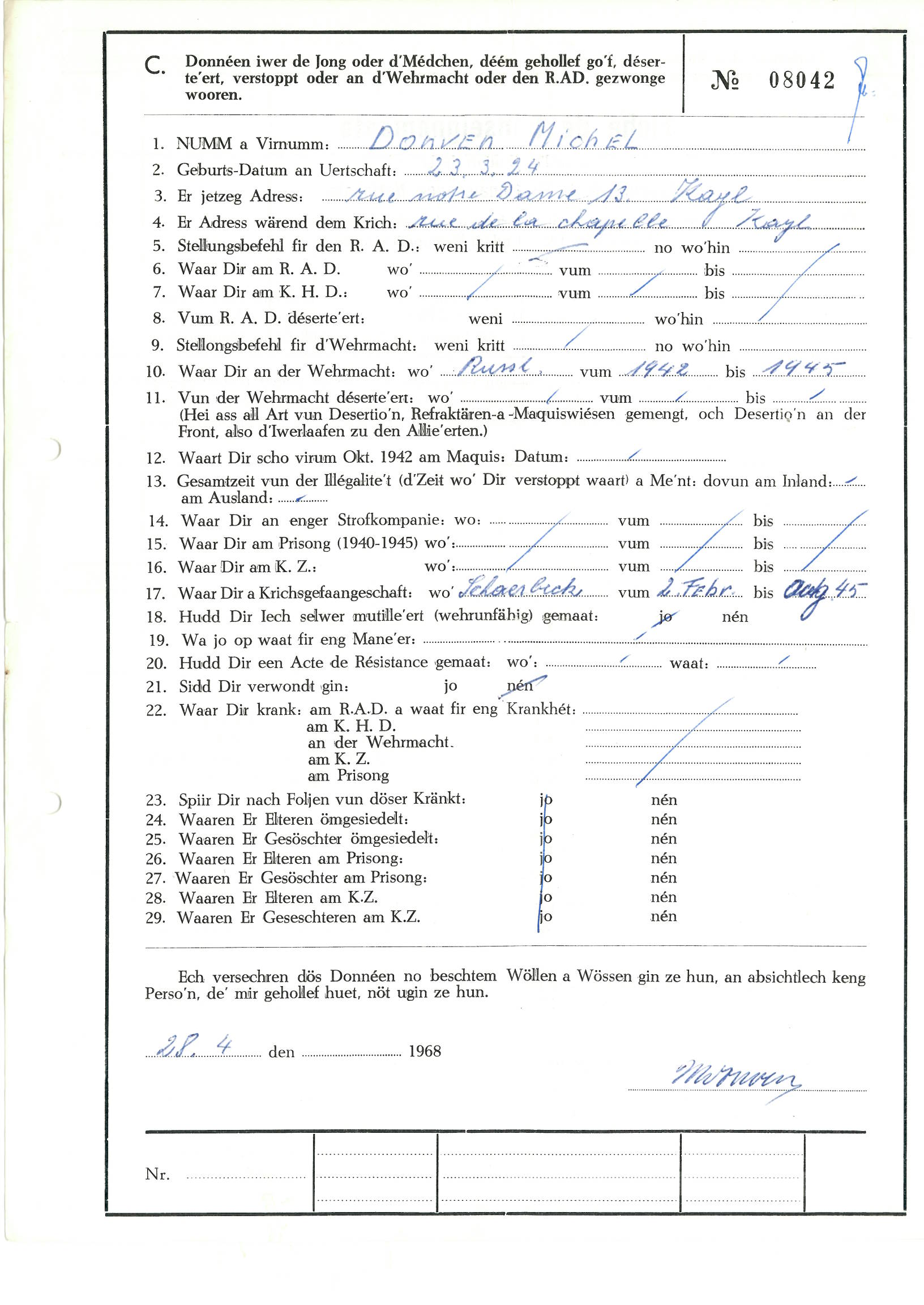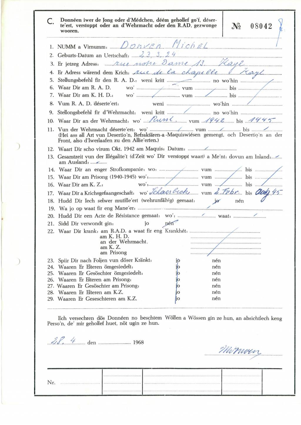 Nom, prénom, nom pendant l'occupation