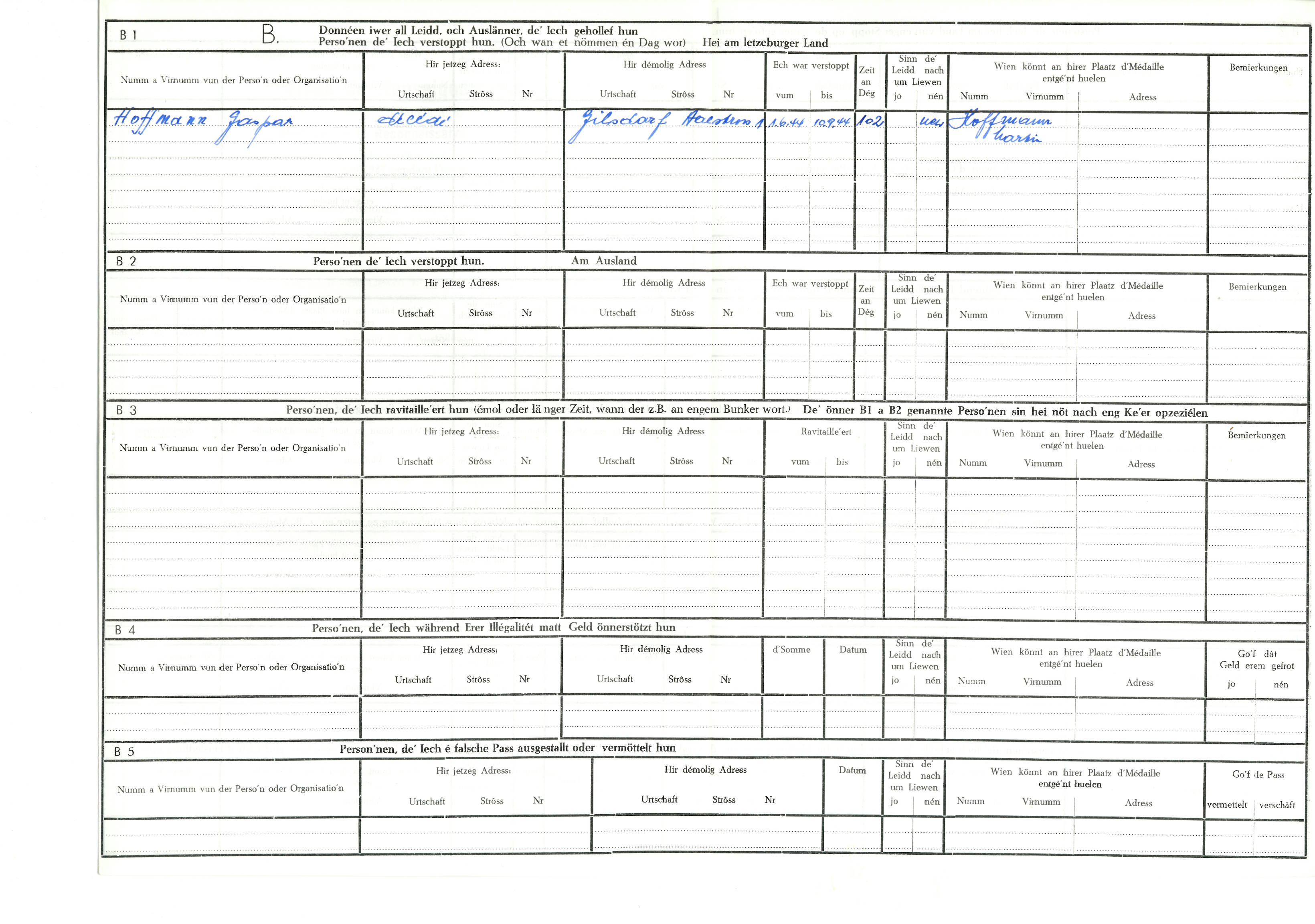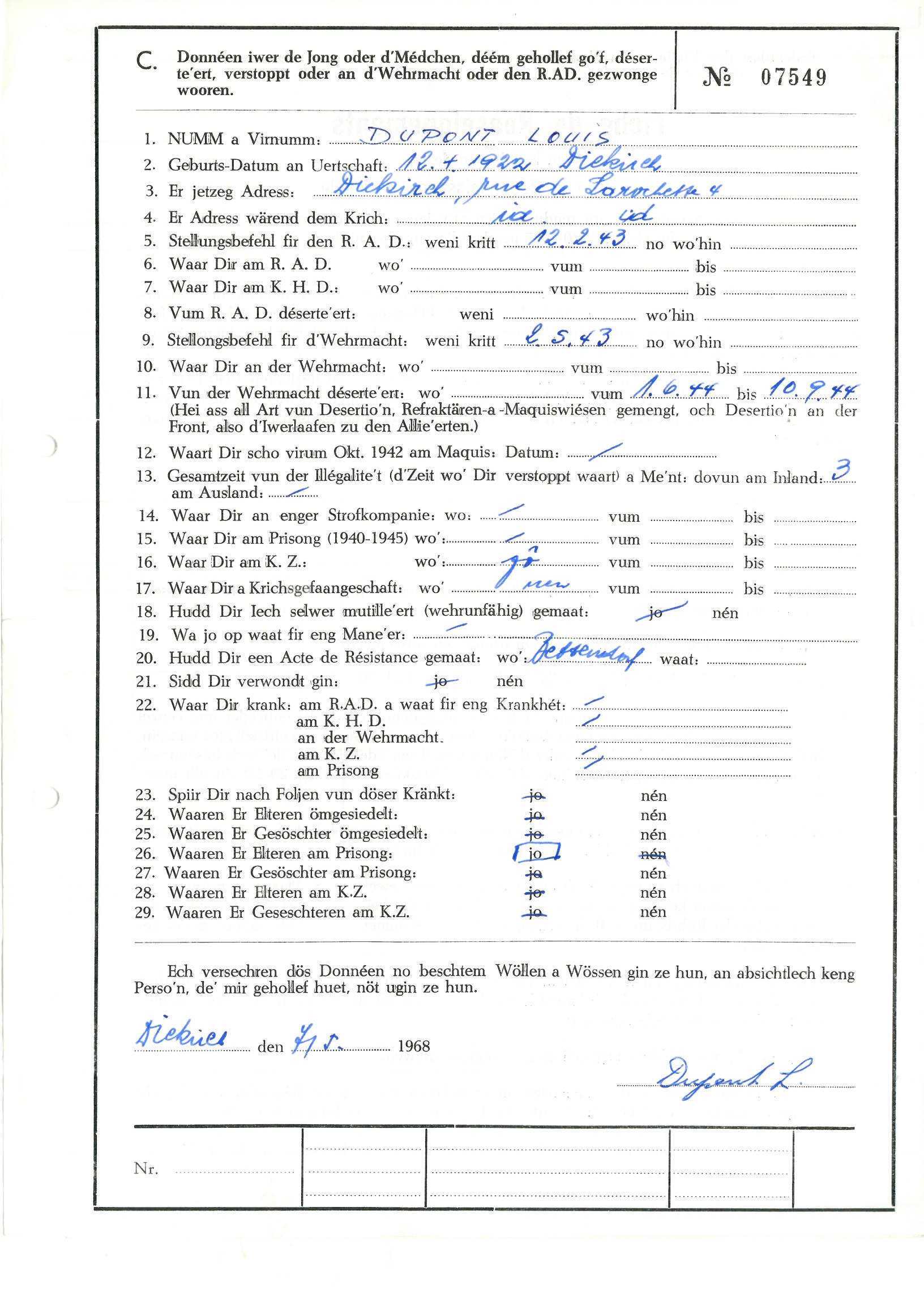 Nom, prénom, nom pendant l'occupation
