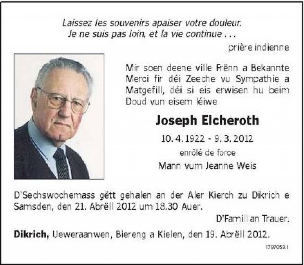 Elcheroth Jos 10041922 Mersch SACRIFIES