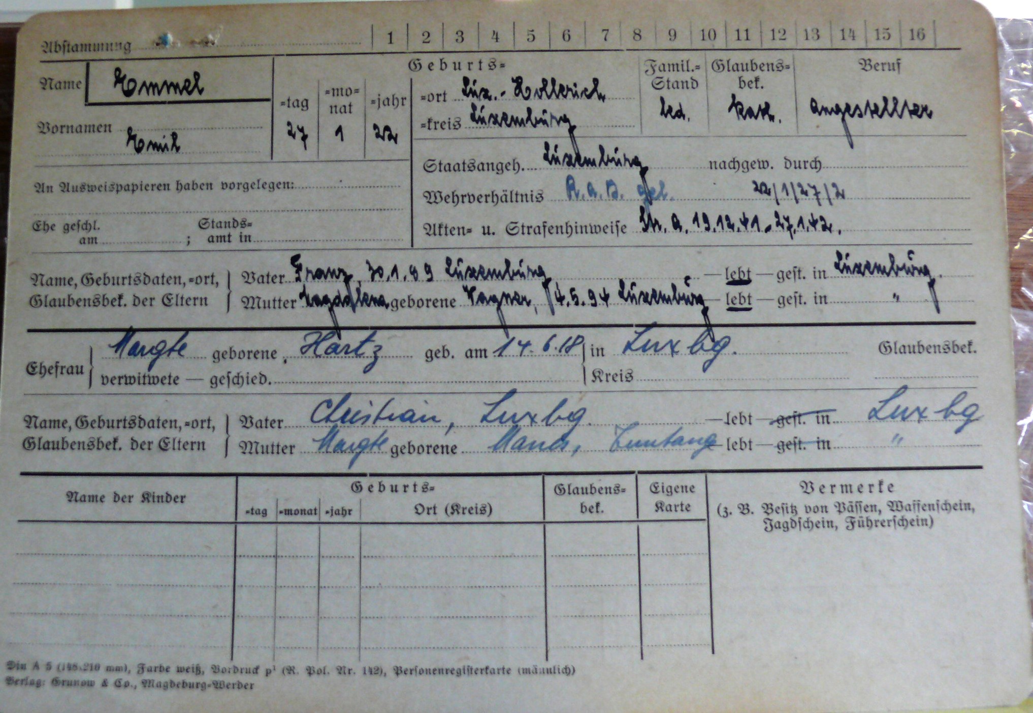 Nom, prénom, nom pendant l'occupation