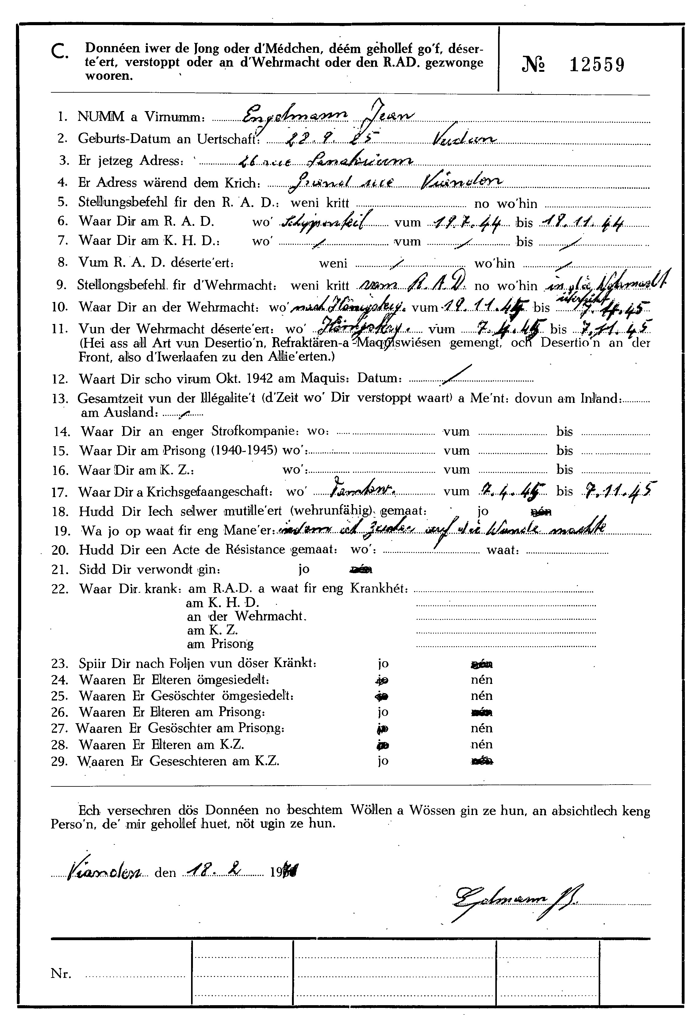 Nom, prénom, nom pendant l'occupation