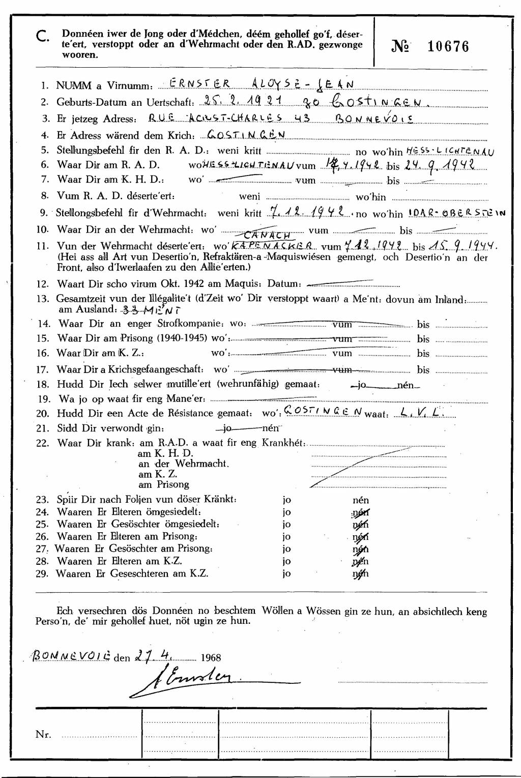 Nom, prénom, nom pendant l'occupation