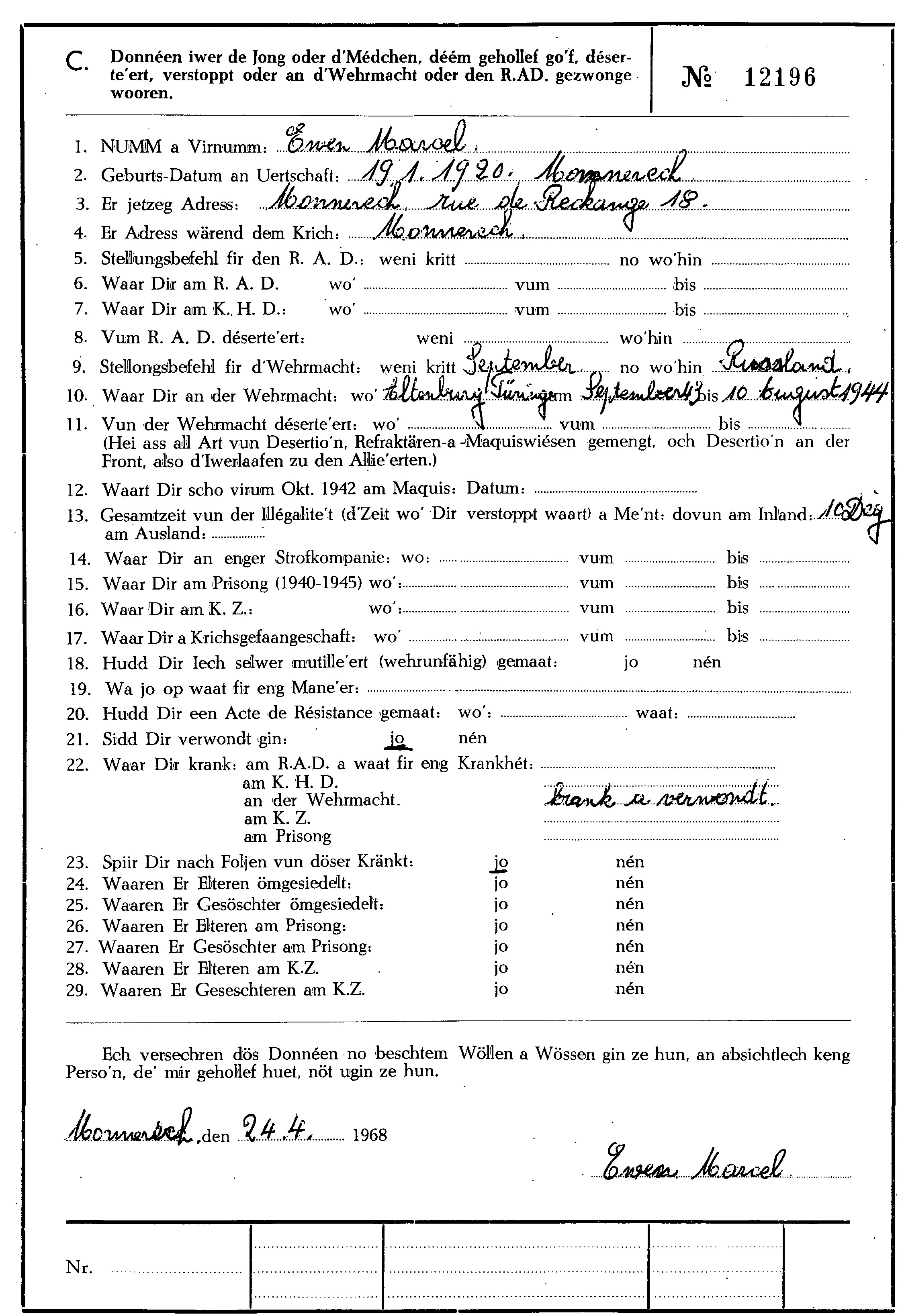 Nom, prénom, nom pendant l'occupation
