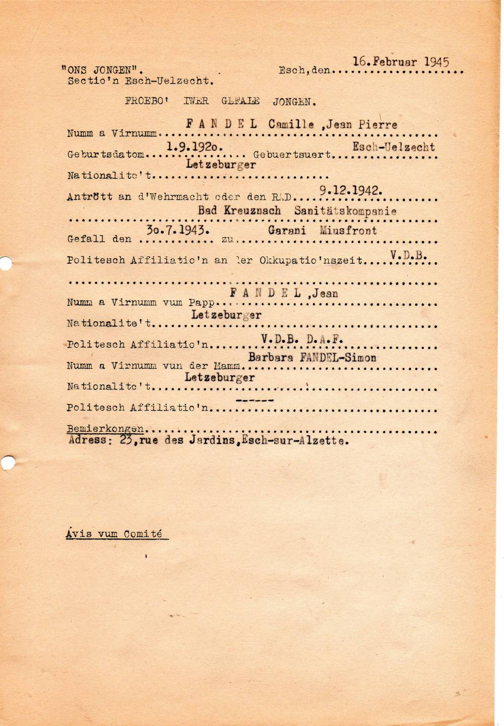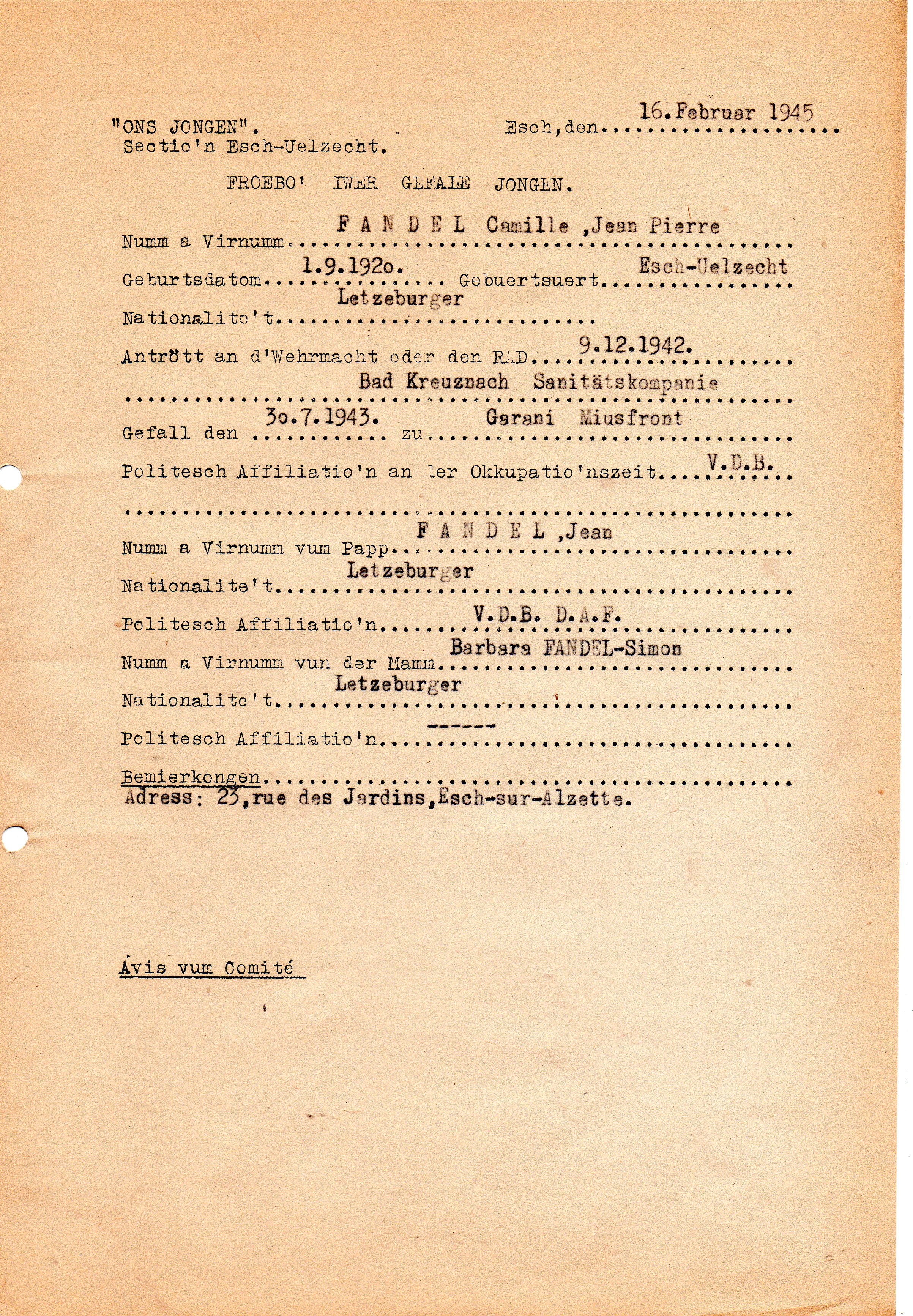 Nom, prénom, nom pendant l'occupation