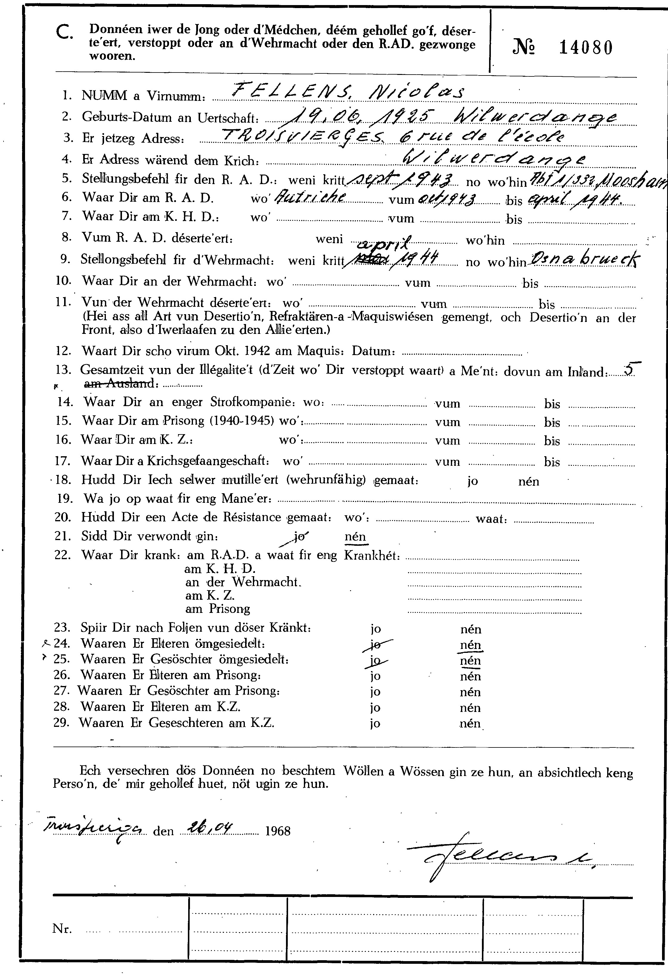 Nom, prénom, nom pendant l'occupation