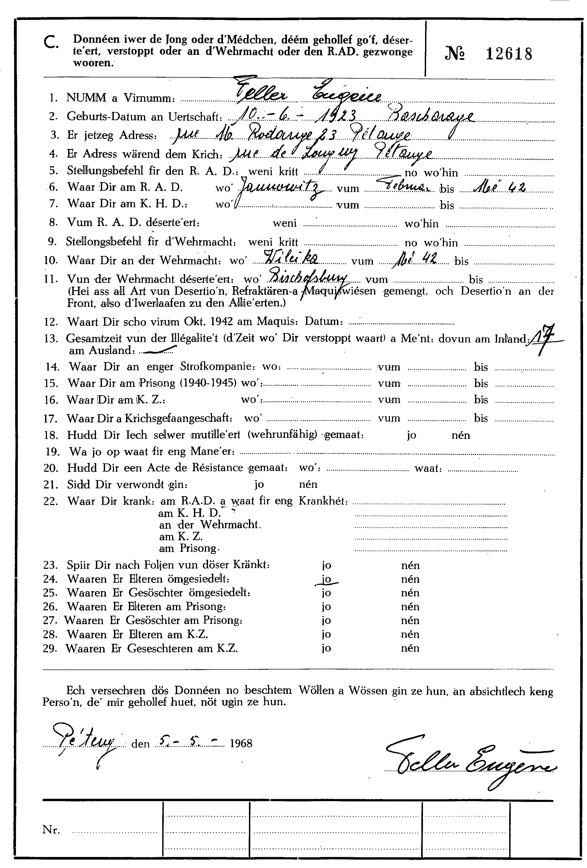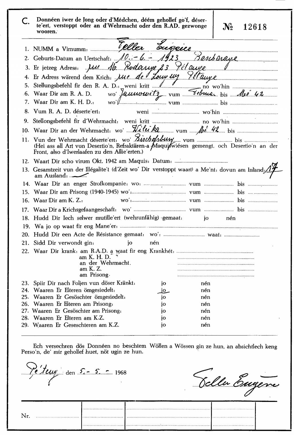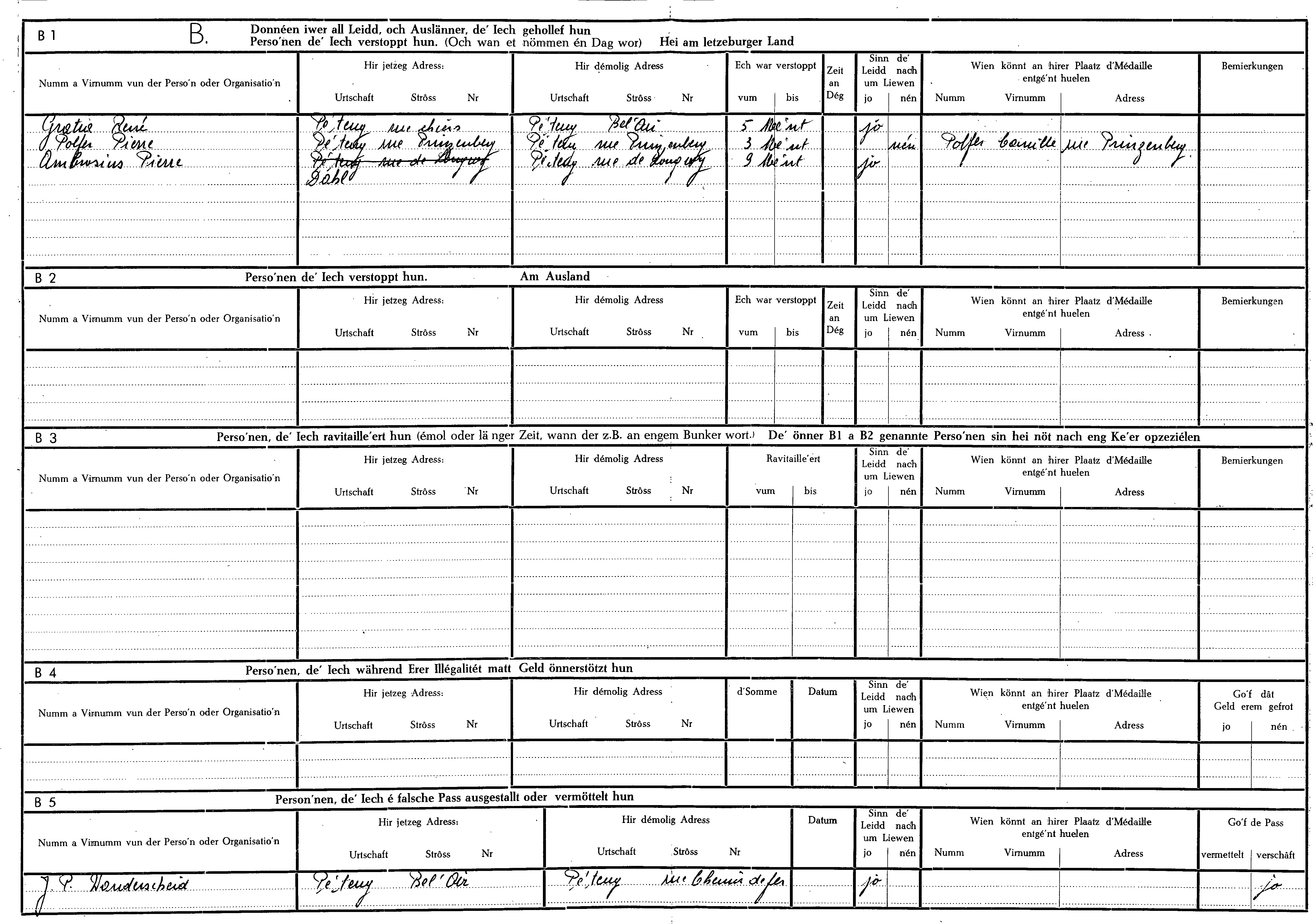 Nom, prénom, nom pendant l'occupation