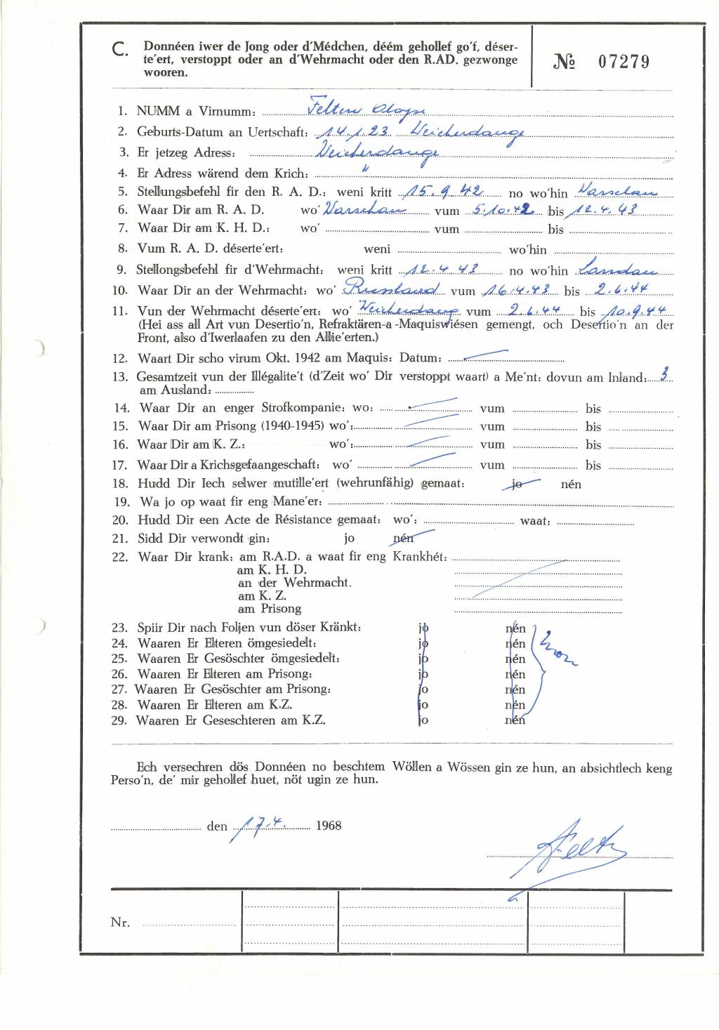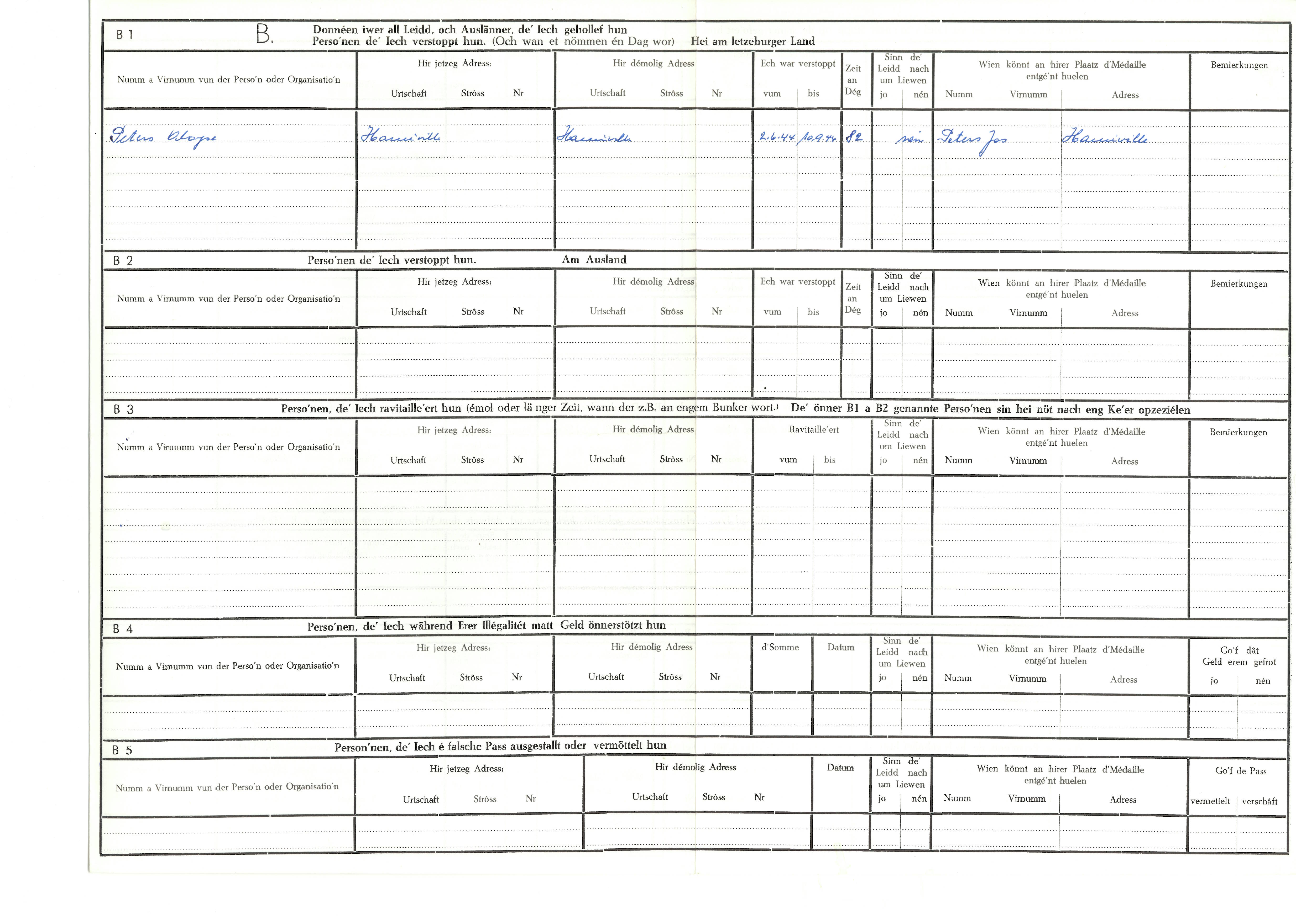 Nom, prénom, nom pendant l'occupation