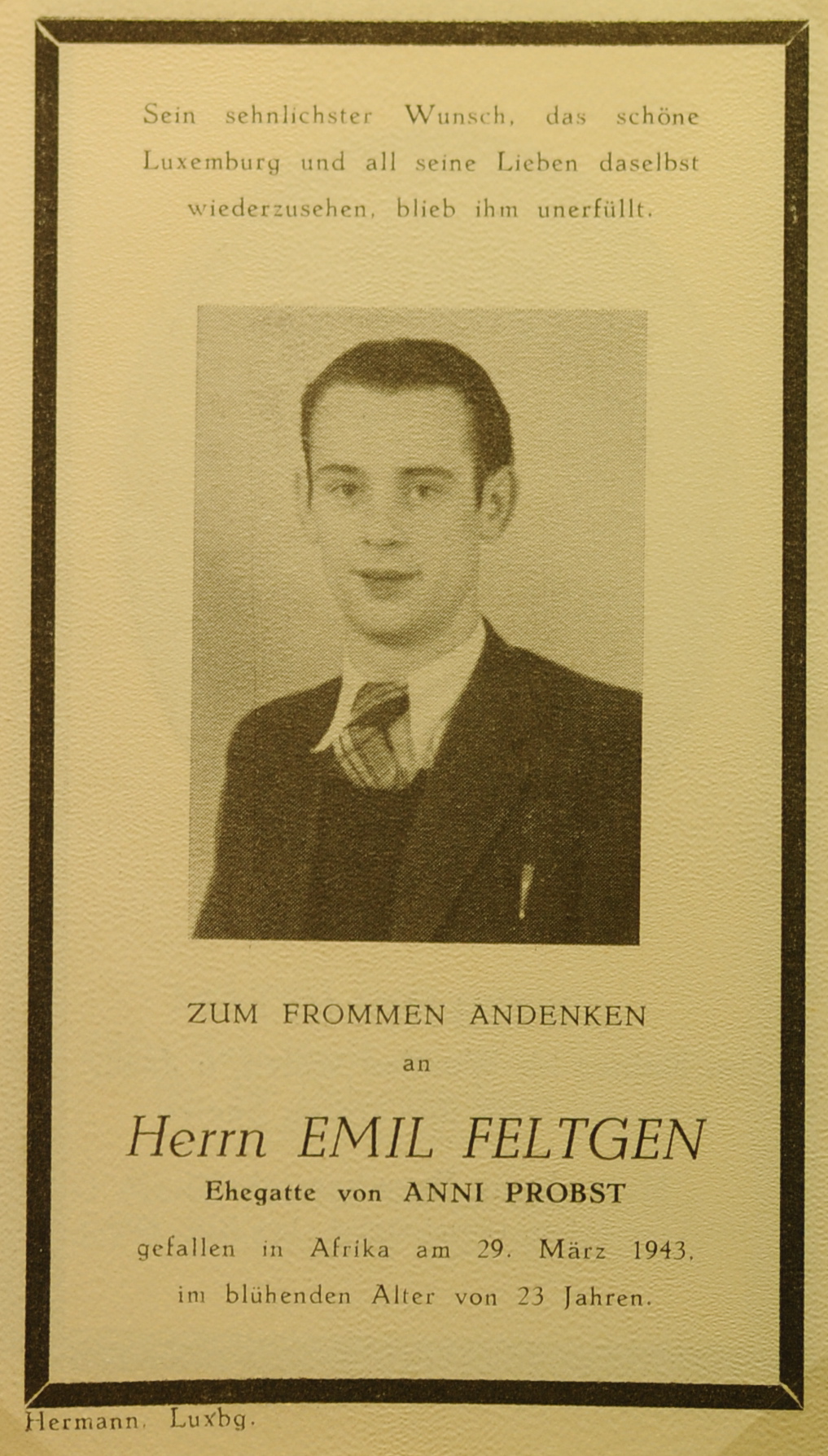 Divers Feltgen Emil.jpg Télécharger le document Feltgen_Emil_29031943_Afrika_23_ans.jpg Télécharger le document Img1867.jpg Télécharger le document Ons Jongen Ons Meederscher, 2012, EG.pdf Télécharger le document Walfer.pdf Télécharger le document