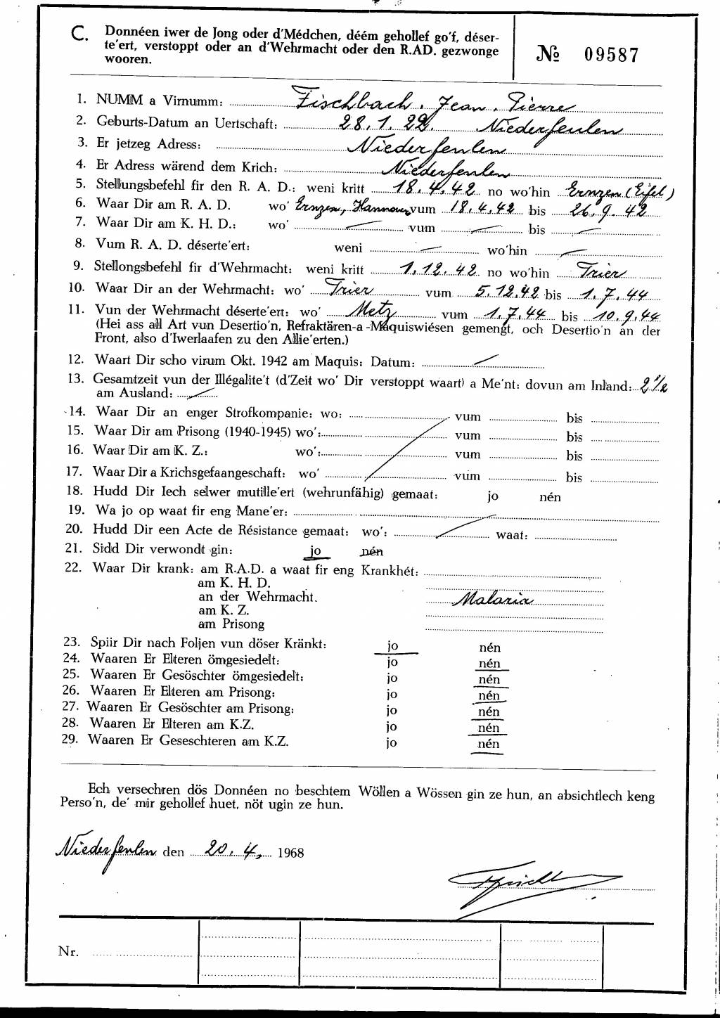 FISCHBACH Jean Pierre 28011922 Niederfeulen 1.jpg Télécharger le document 2.jpg Télécharger le document 3.jpg Télécharger le document