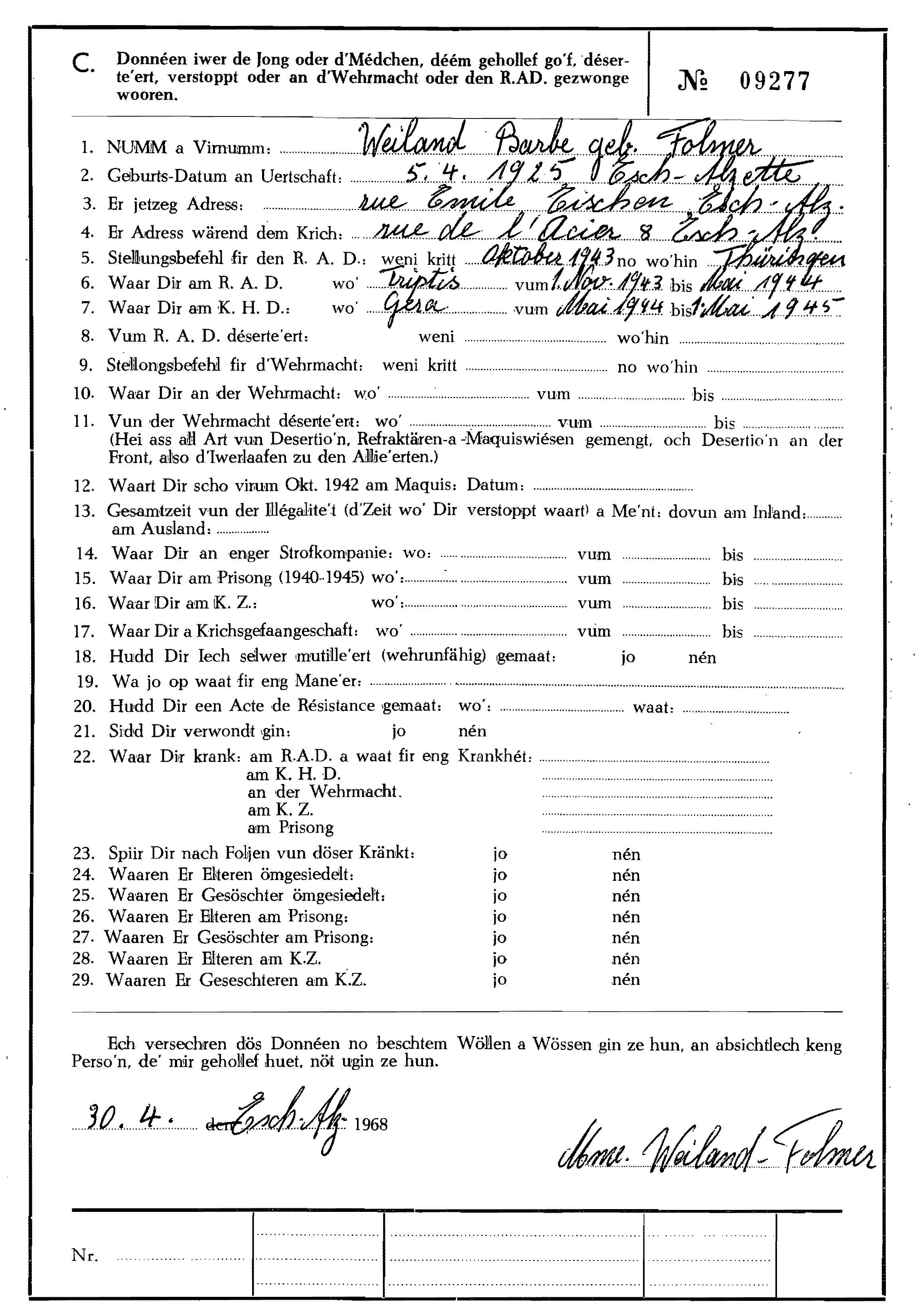 FOLMER epouse de WEILAND Barbe 05041925 Esch sur Alzette 1.jpg Télécharger le document 2.jpg Télécharger le document 3.jpg Télécharger le document
