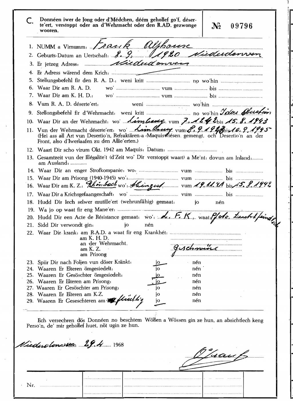 FRANCK Alphonse 08091920 Niederonven 1.jpg Télécharger le document 2.jpg Télécharger le document 3.jpg Télécharger le document