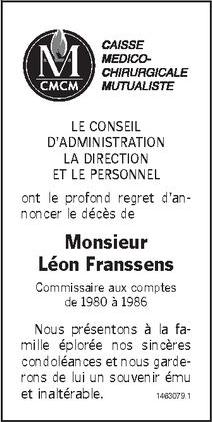 Franssens Léon Franssens Léon.jpg Télécharger le document Franssens Léon1.jpg Télécharger le document Franssens Léon2.jpg Télécharger le document Franssens Léon3.jpg Télécharger le document