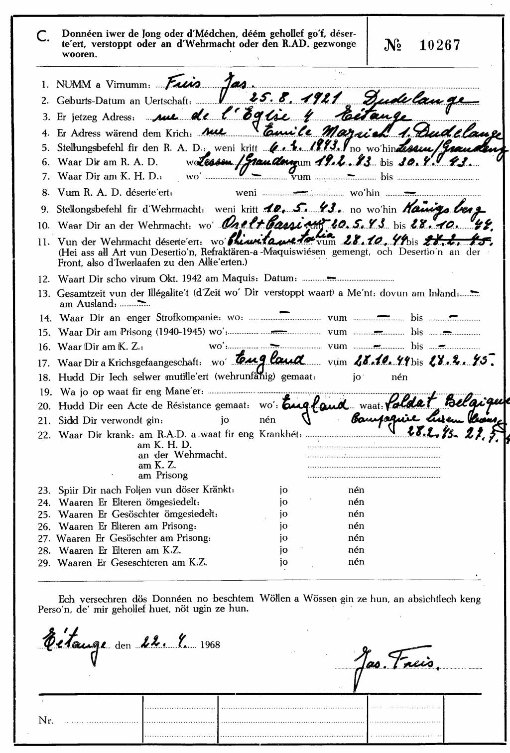 Nom, prénom, nom pendant l'occupation