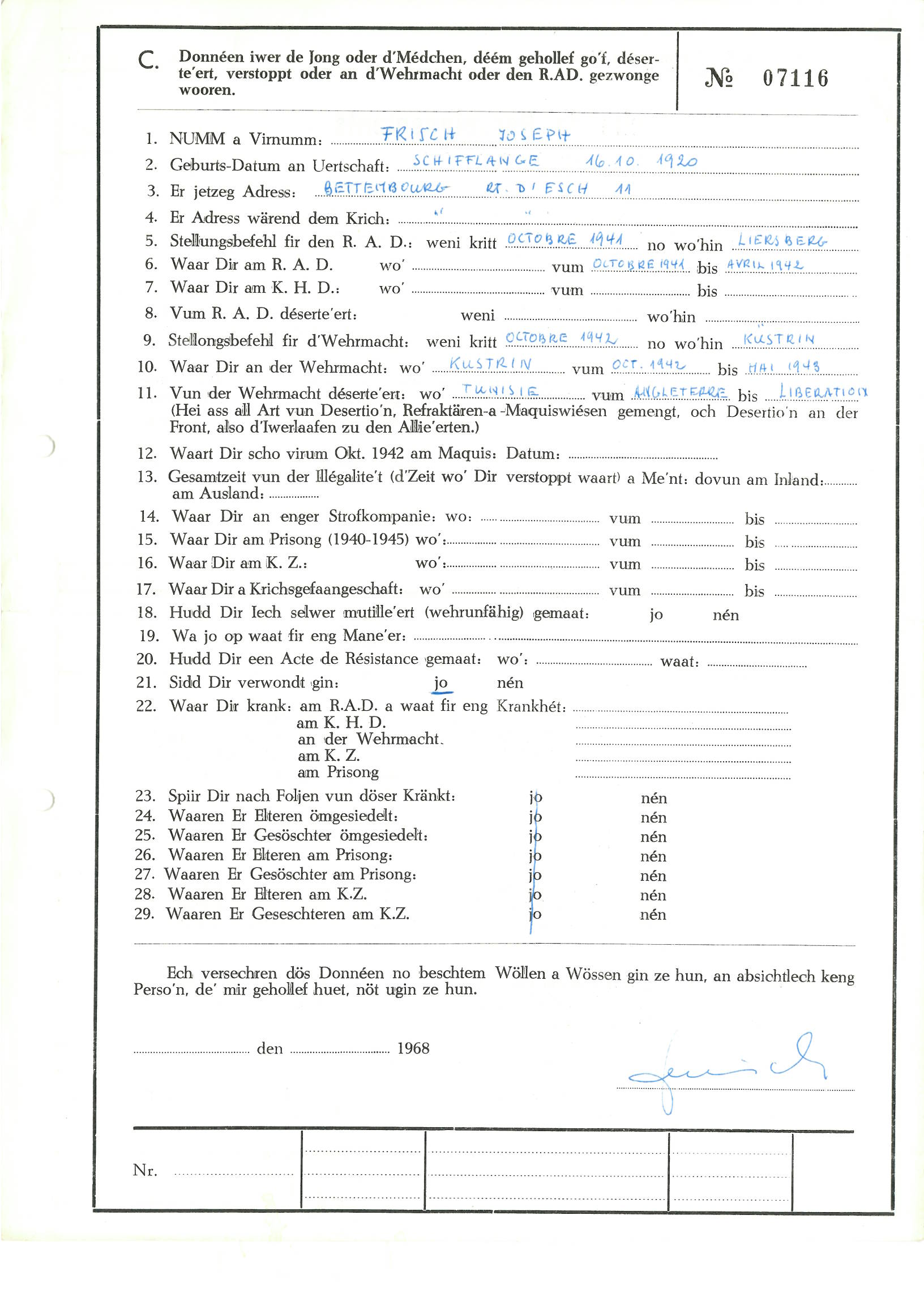 Nom, prénom, nom pendant l'occupation