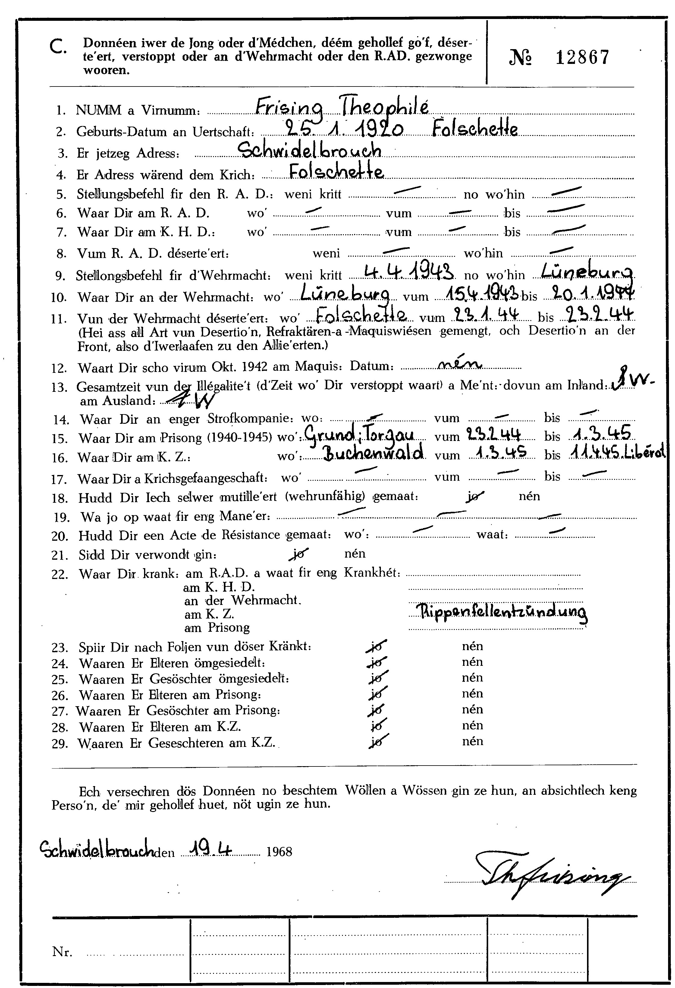 Auszug Tagebuch Friesing Théo Folscheid