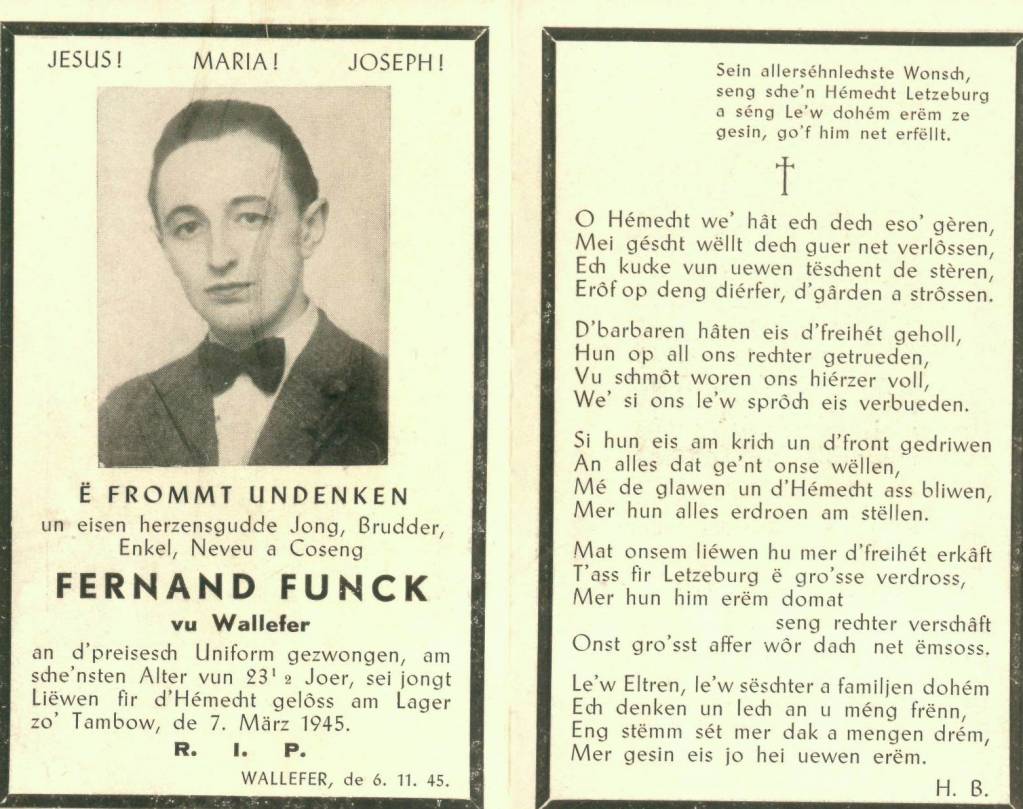 Divers_Funck_Fernand 1941_Population_VDL_Luxembourg_RAD_COLLING_THILL_Bereldange.pdf Télécharger le document Funck_Fernand_Walferdange_07031945_Tambow_23_ans.jpg Télécharger le document Walfer.pdf Télécharger le document
