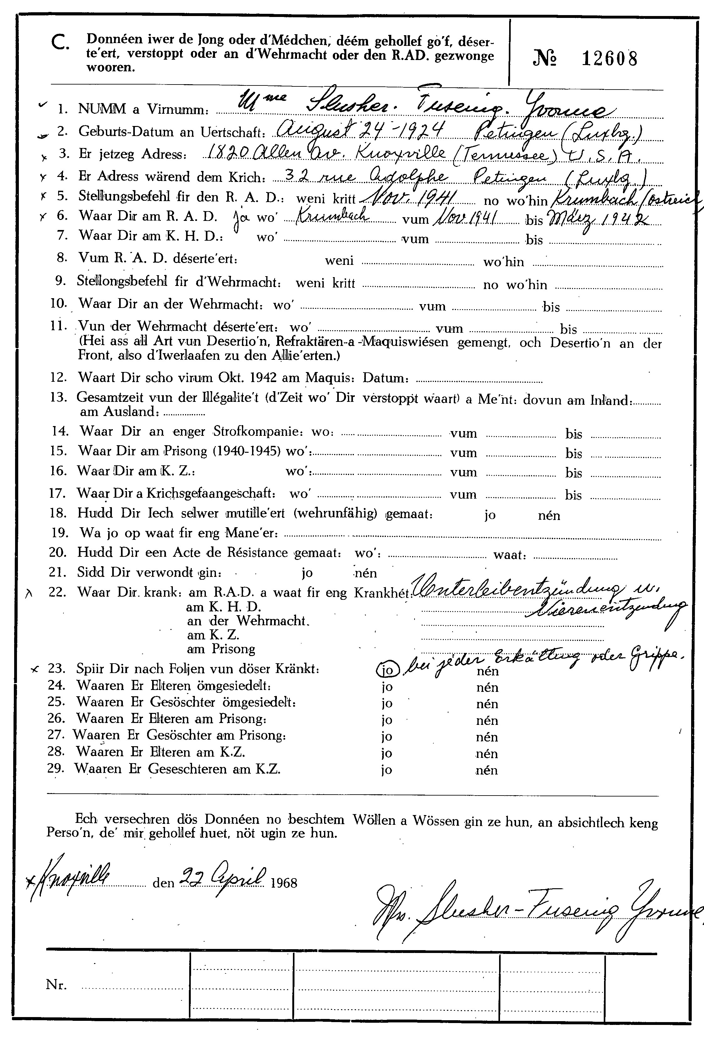 Fusenig épouse Sluscher Yvonne
