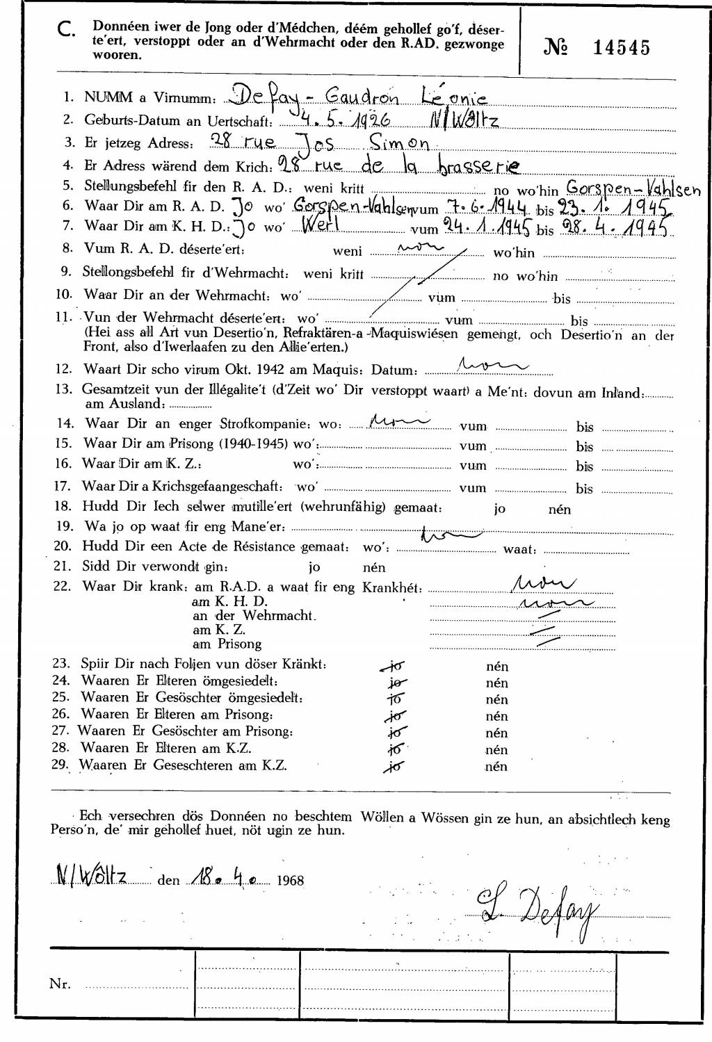 Nom, prénom, nom pendant l'occupation