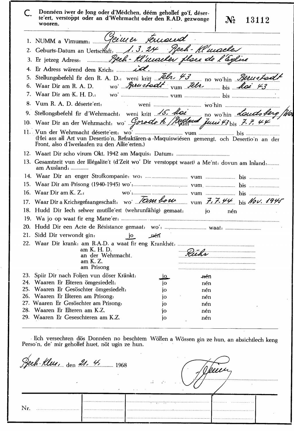 Geimer_Fernand_01031924_Bech_Kleinmacher_10102011_Luxembourg_Extrait_Livre_TROSSEN_Marc_Verluere_Joeren_Band_III_2018_p_469.JPG
