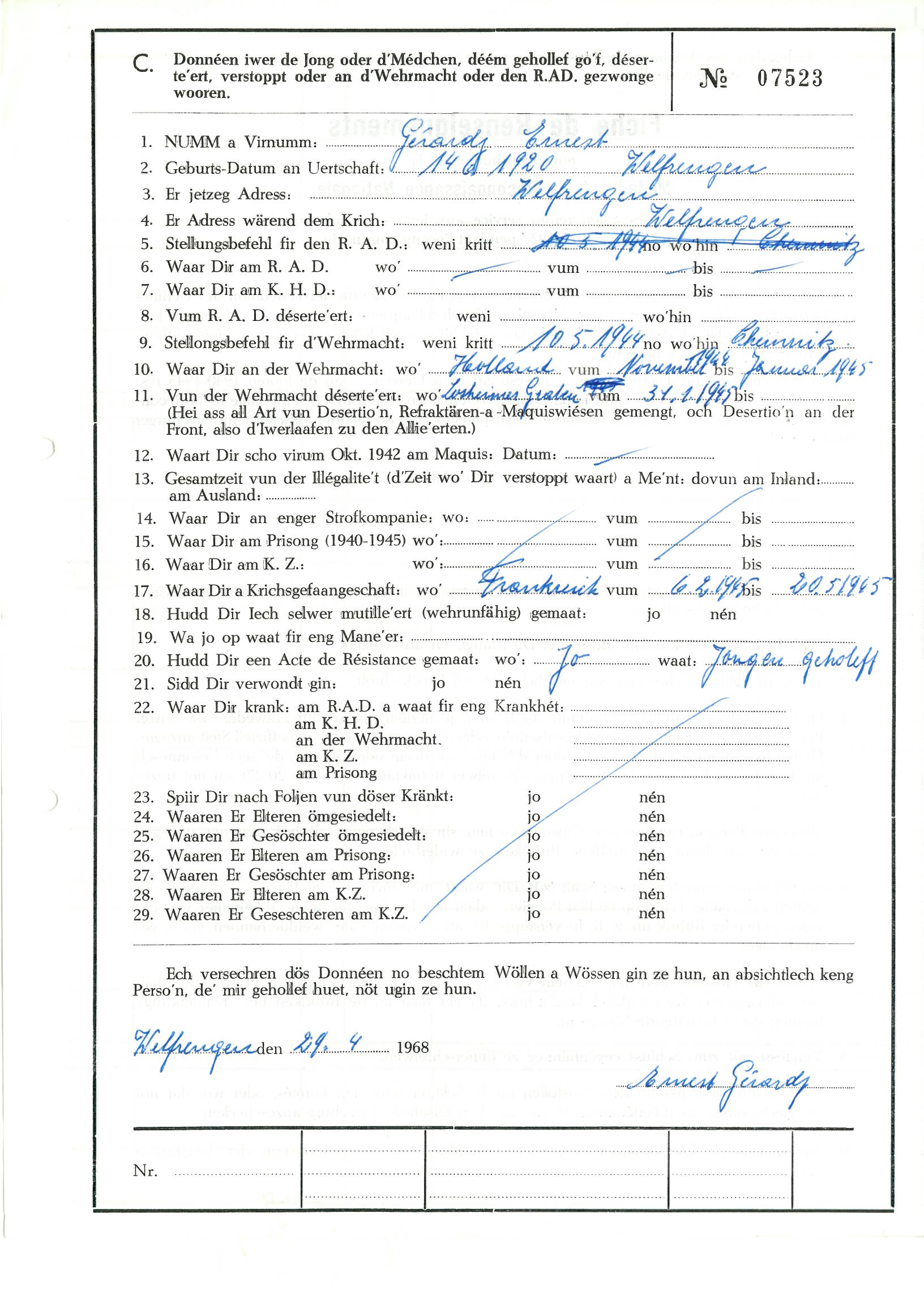 Nom, prénom, nom pendant l'occupation