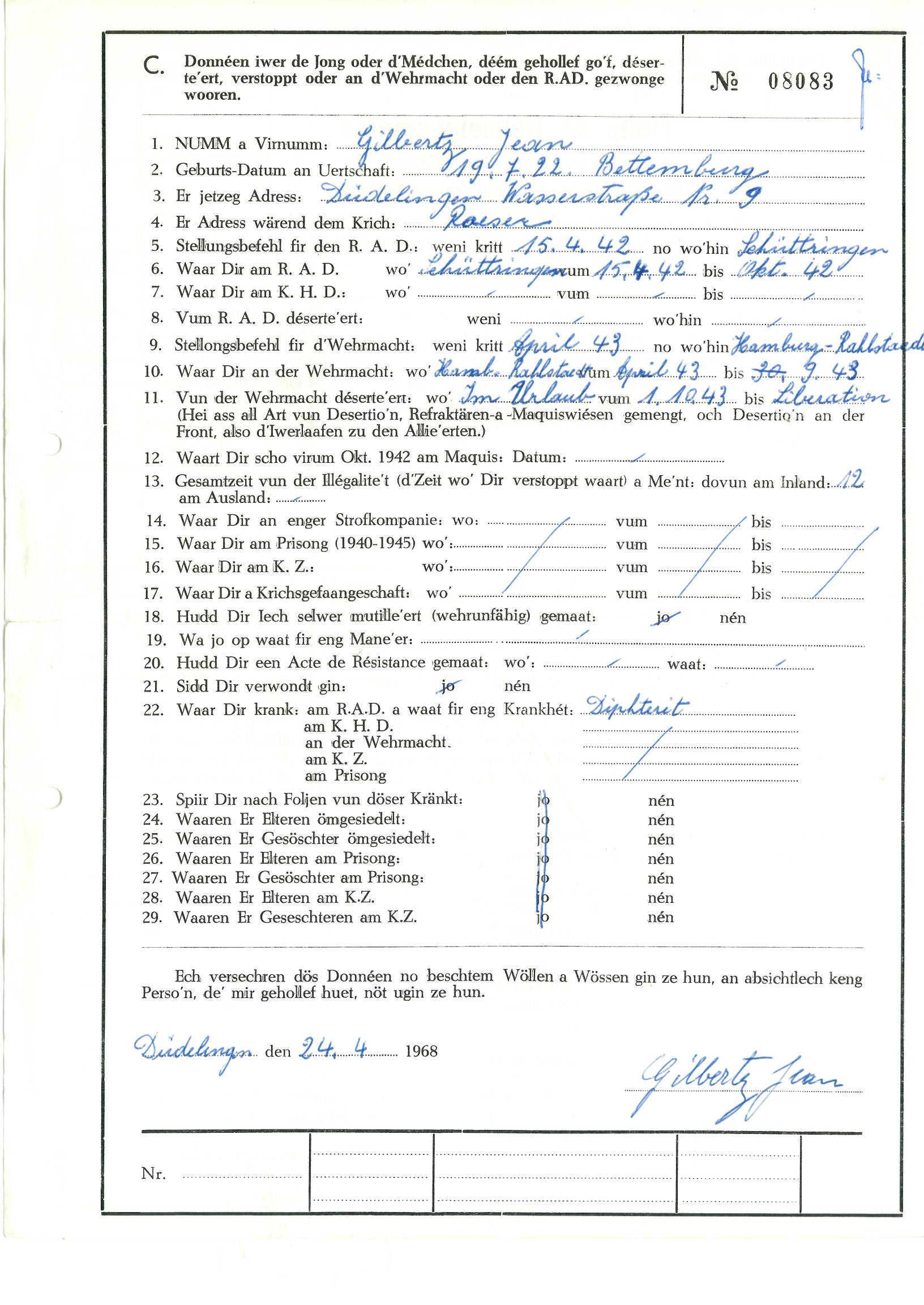 Gilbertz Jean 19071922 Bettembourg 1.jpg Télécharger le document 2.jpg Télécharger le document Gillet Joseph 24111924 Bass 1.jpg Télécharger le document 2.jpg Télécharger le document