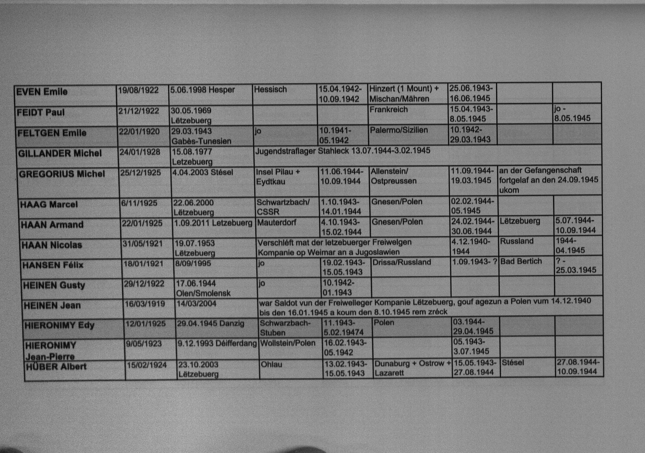 Nom, prénom, nom pendant l'occupation