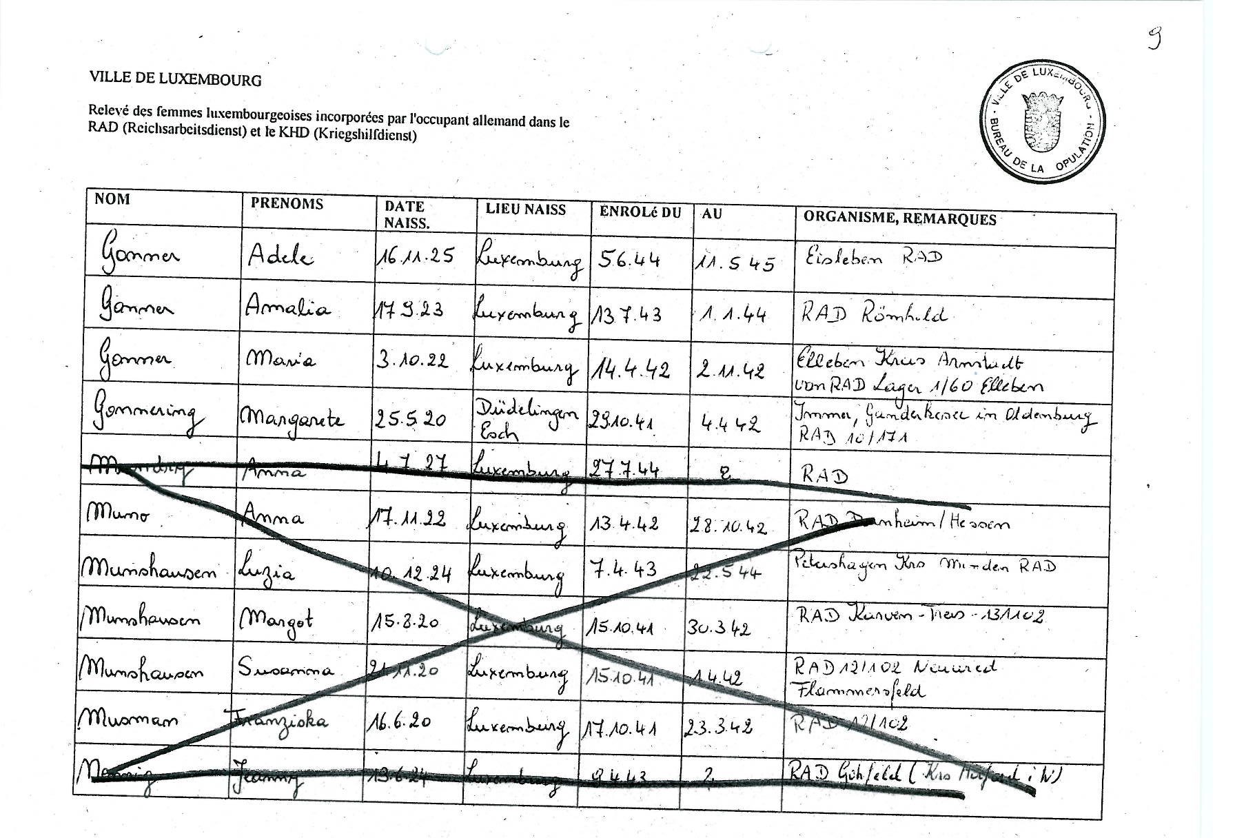 Nom, prénom, nom pendant l'occupation