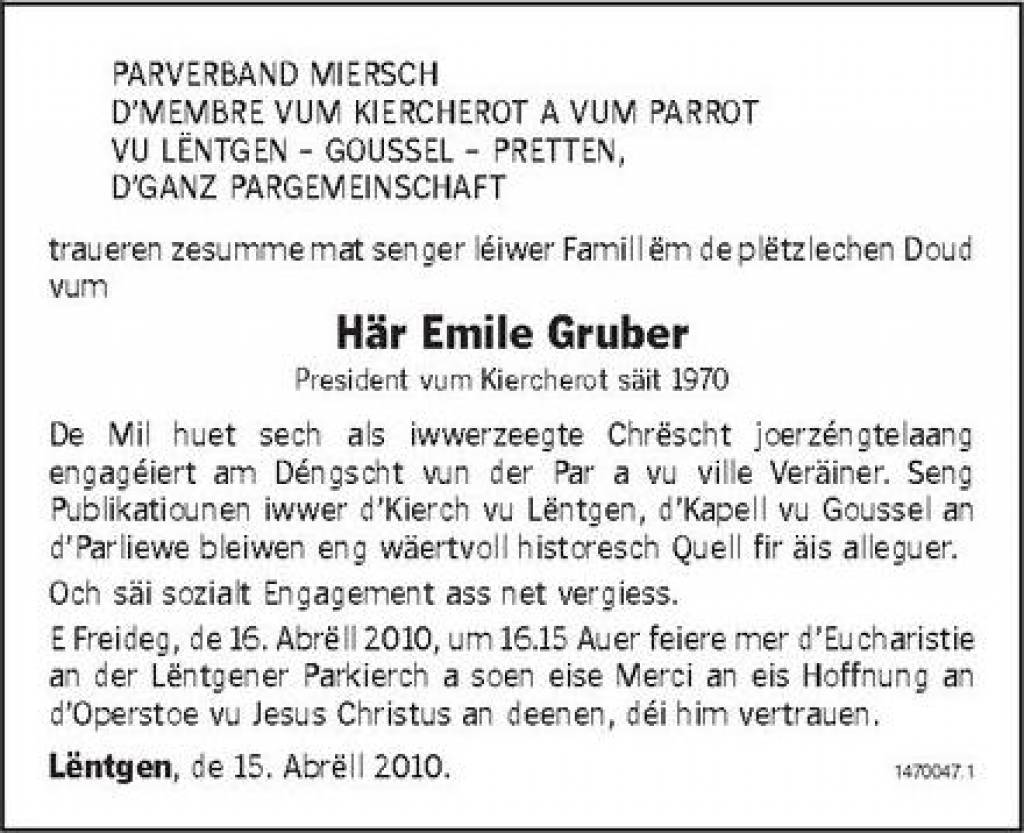 Divers_Gruber_Emile Gruber_Emile_Lintgen_Fonds_WEIRICH_Jos_HOLLERICH_Box_10_2018.pdf Télécharger le document Sacrifiés.jpg Télécharger le document Gruber Emile Gruber Emile.jpg Télécharger le document Gruber Emile1.jpg Télécharger le document Gruber Emile2.jpg Télécharger le document Gruber Emile3.jpg Télécharger le document Gruber Emile4.jpg Télécharger le document Gruber Emile5.jpg Télécharger le document