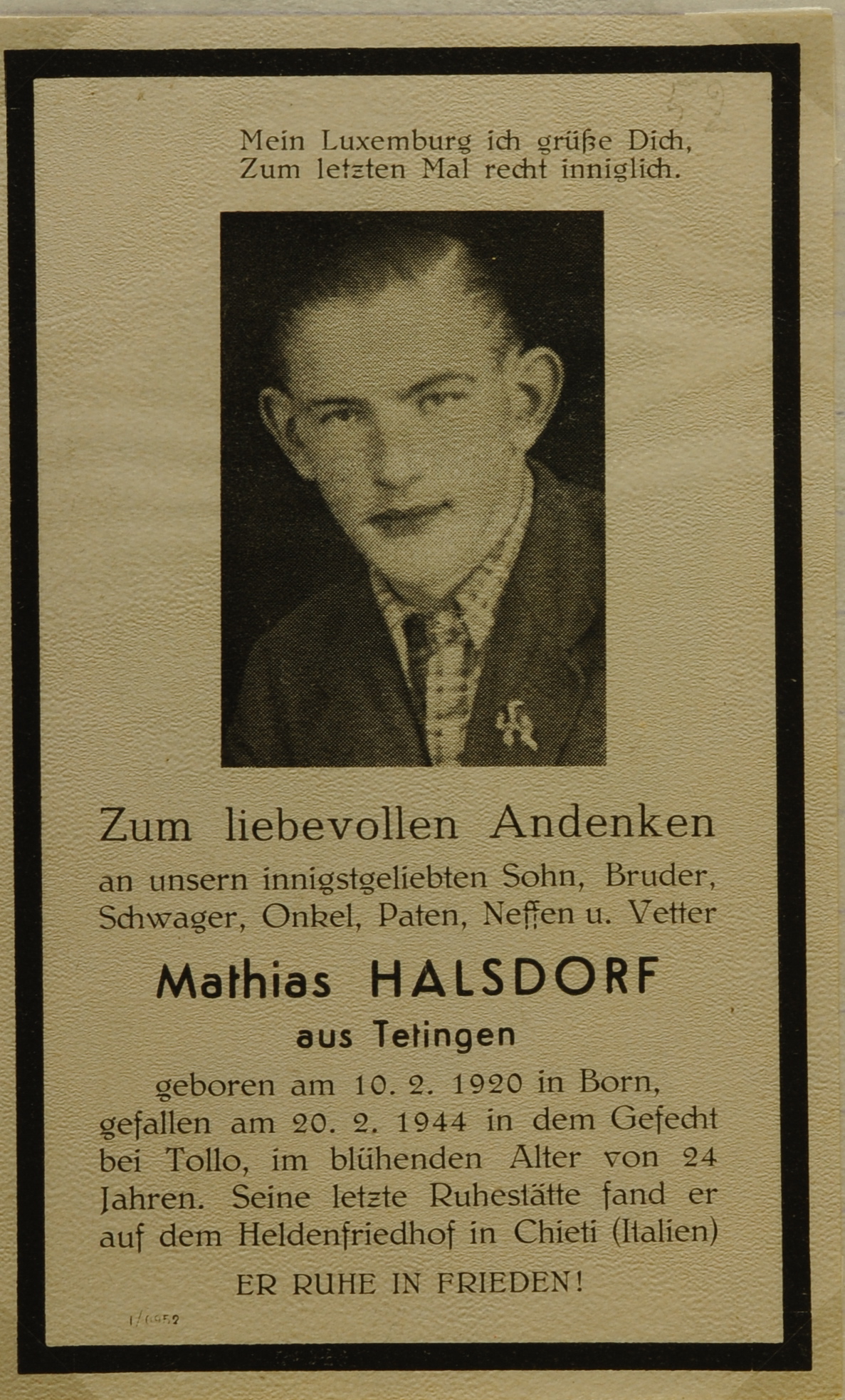 Divers Halsdorf Mathias.JPG Télécharger le document Img0689.jpg Télécharger le document Totenbilder Nr.3 Halsdorf Mathias.jpeg Télécharger le document Leon Beckius img175.jpg Télécharger le document img176.jpg Télécharger le document