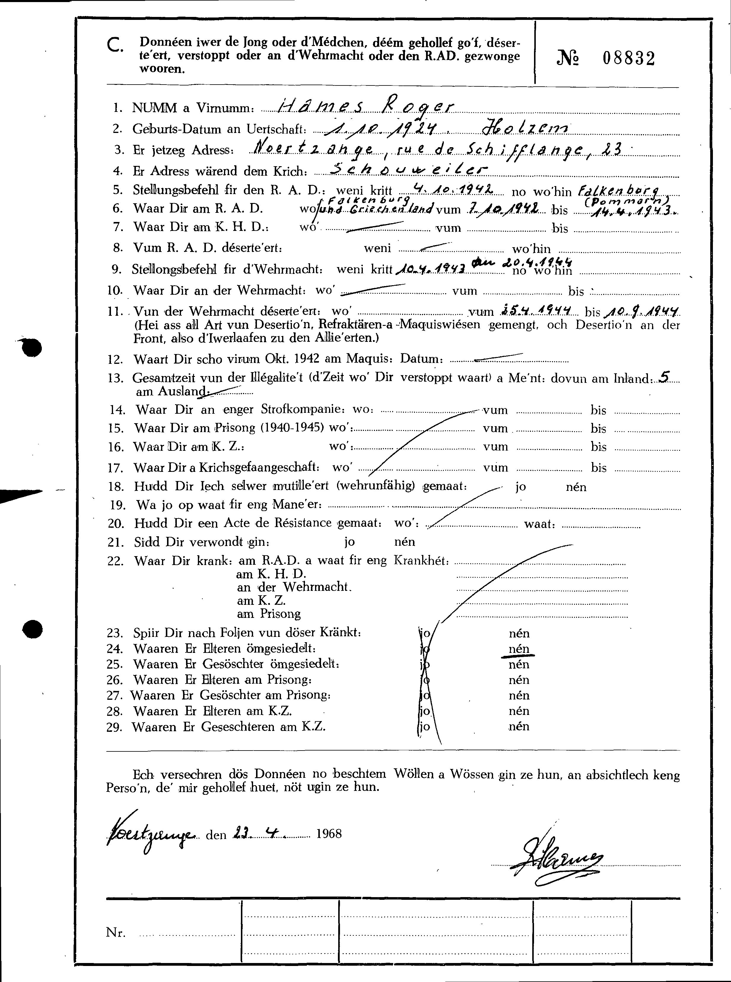 HAMES Roger 01101924 Holzem 1.jpg Télécharger le document 2.jpg Télécharger le document 3.jpg Télécharger le document 4.jpg Télécharger le document