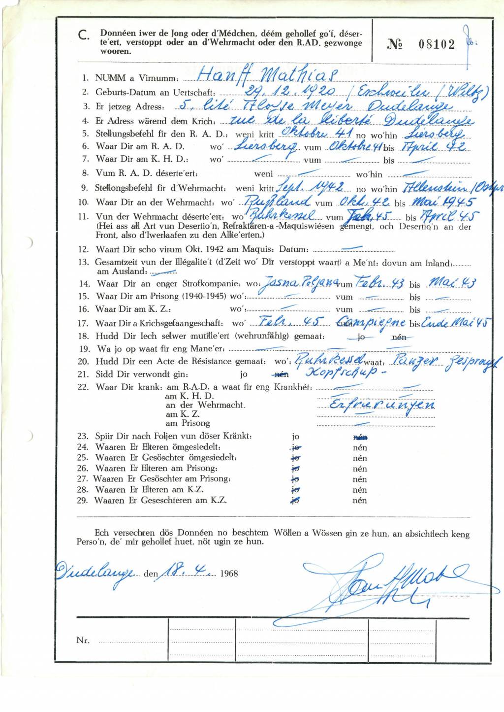 Nom, prénom, nom pendant l'occupation