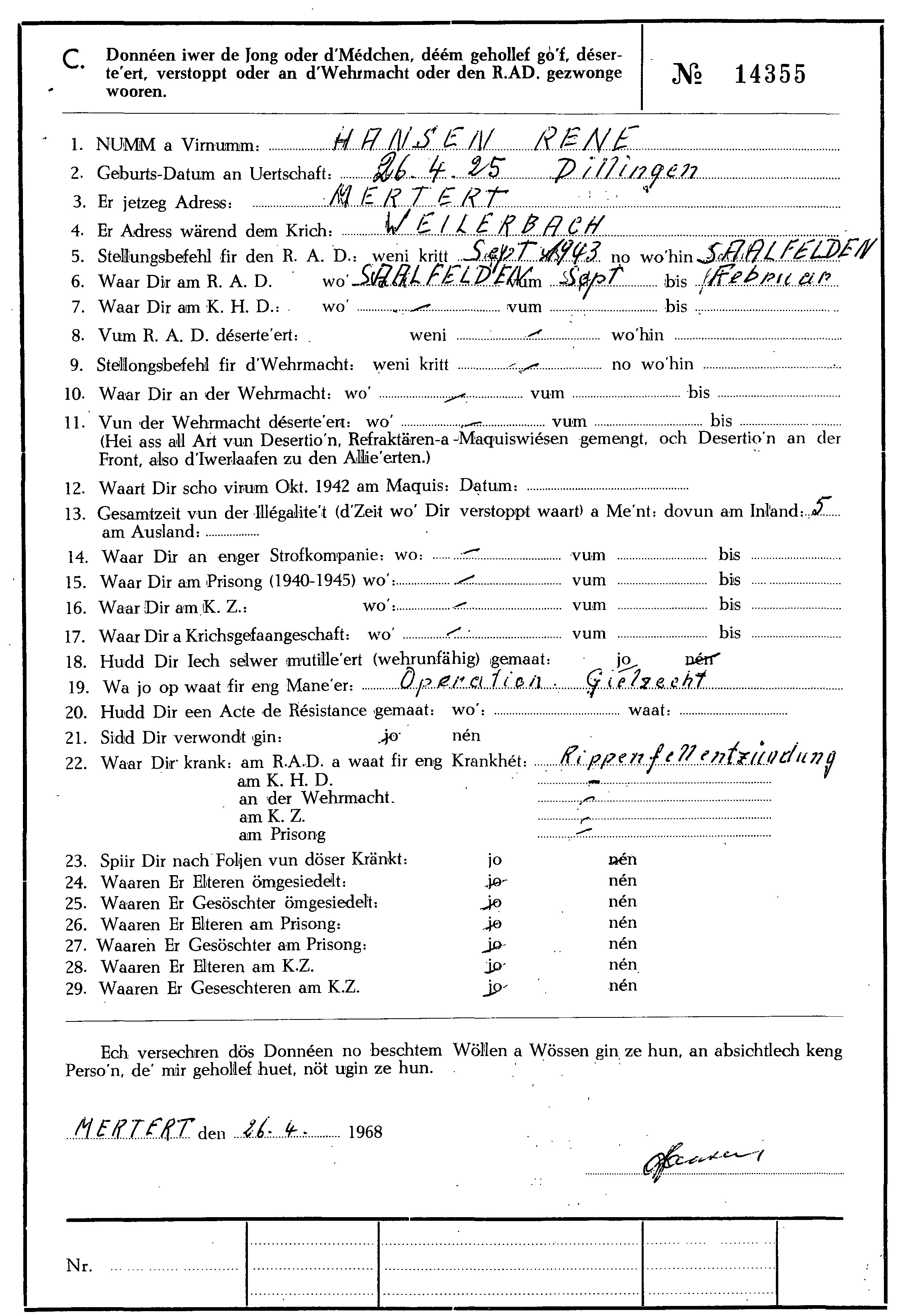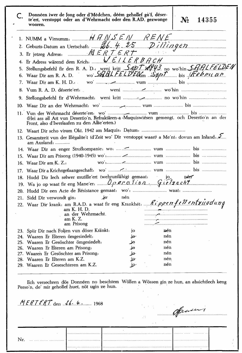 Divers Hansen René 26041925 Dillingen AnLux_CdZ_A_1_37_501 - Copy (11).jpg Télécharger le document Krichjoeren 1940-45 zu Letzebuerg, CDJ ELL.jpg Télécharger le document MRN 1.jpg Télécharger le document 2.jpg Télécharger le document 3.jpg Télécharger le document