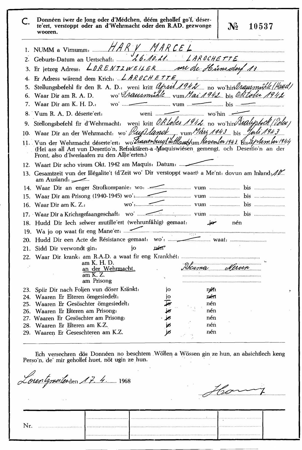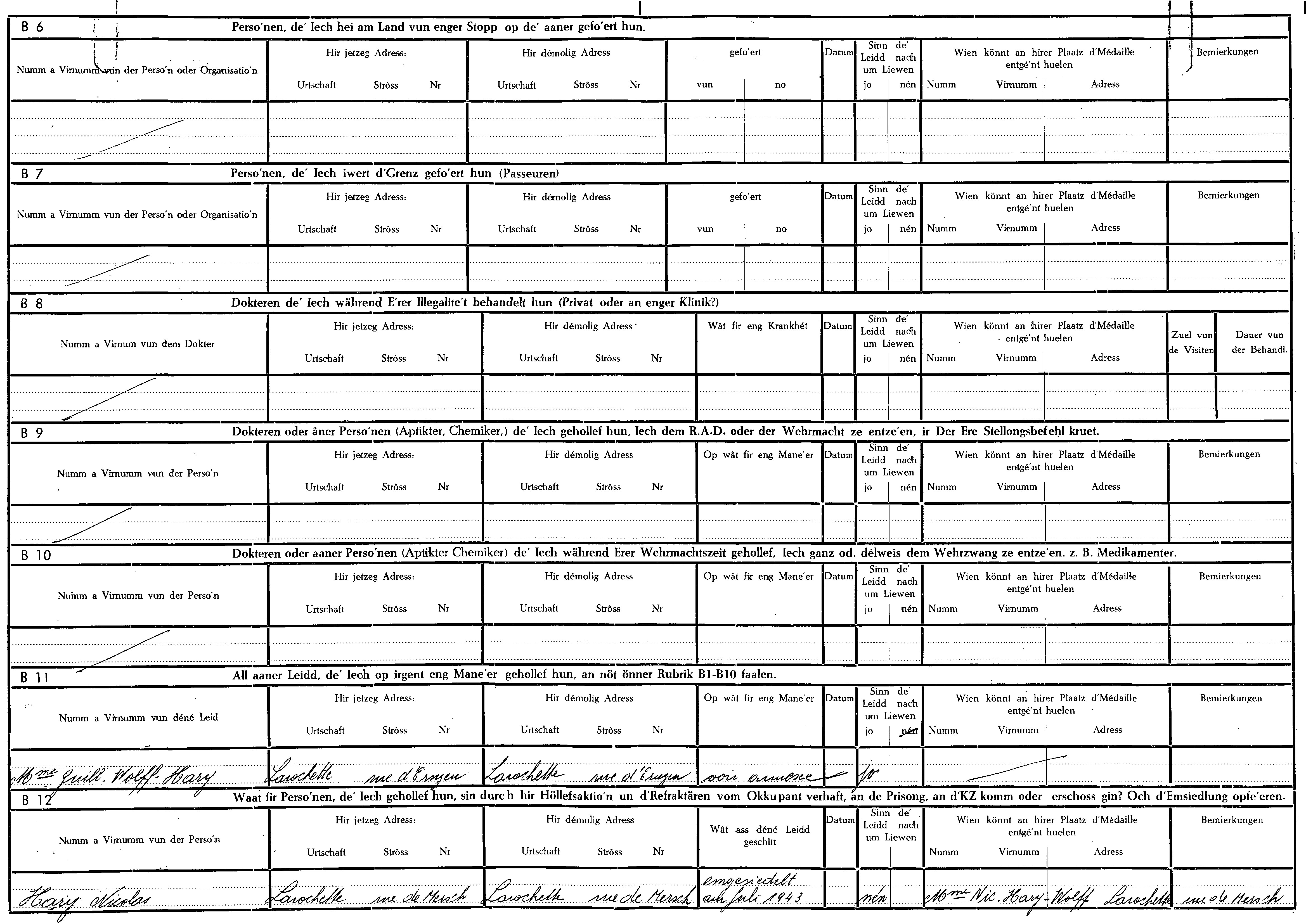 Nom, prénom, nom pendant l'occupation