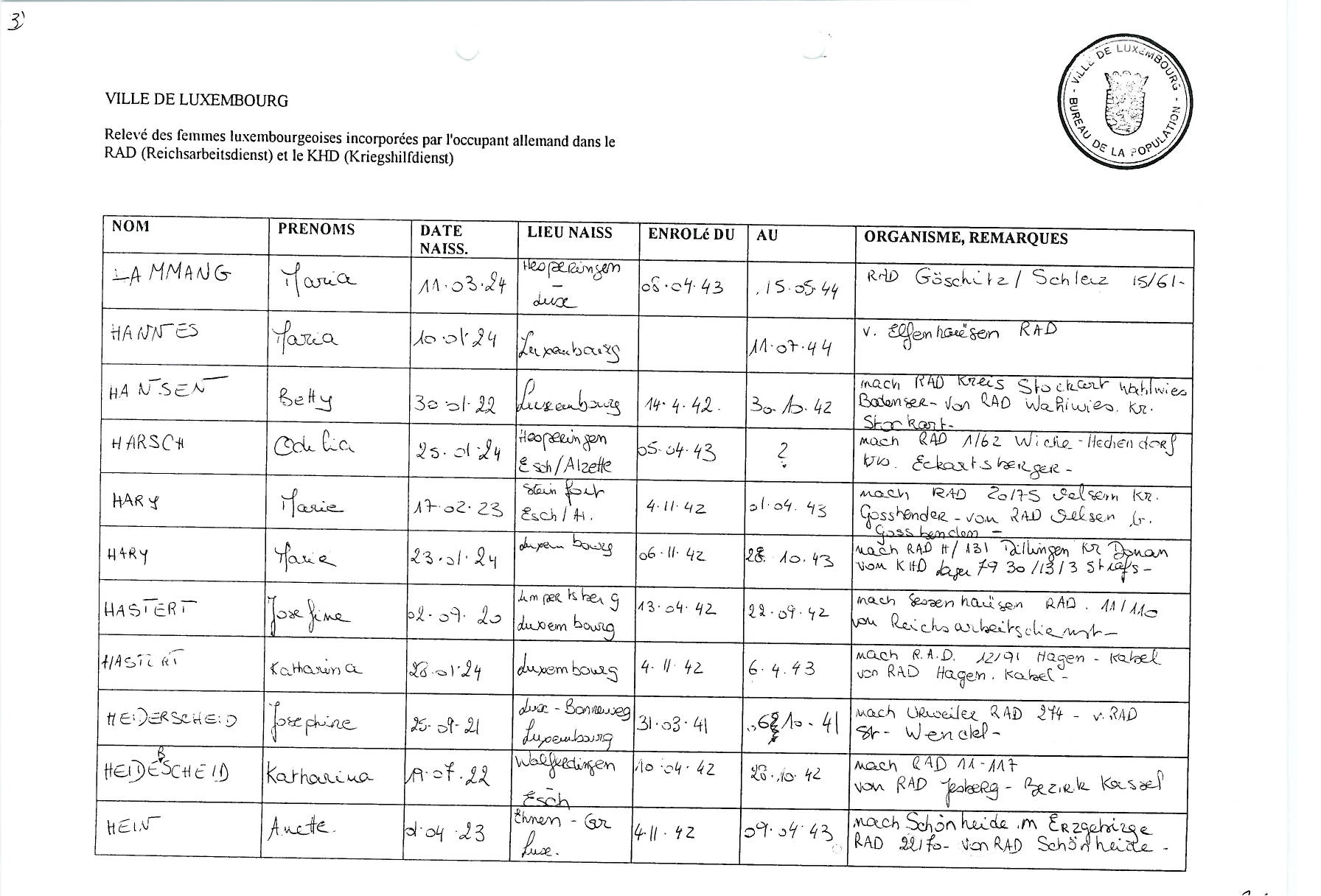 Nom, prénom, nom pendant l'occupation