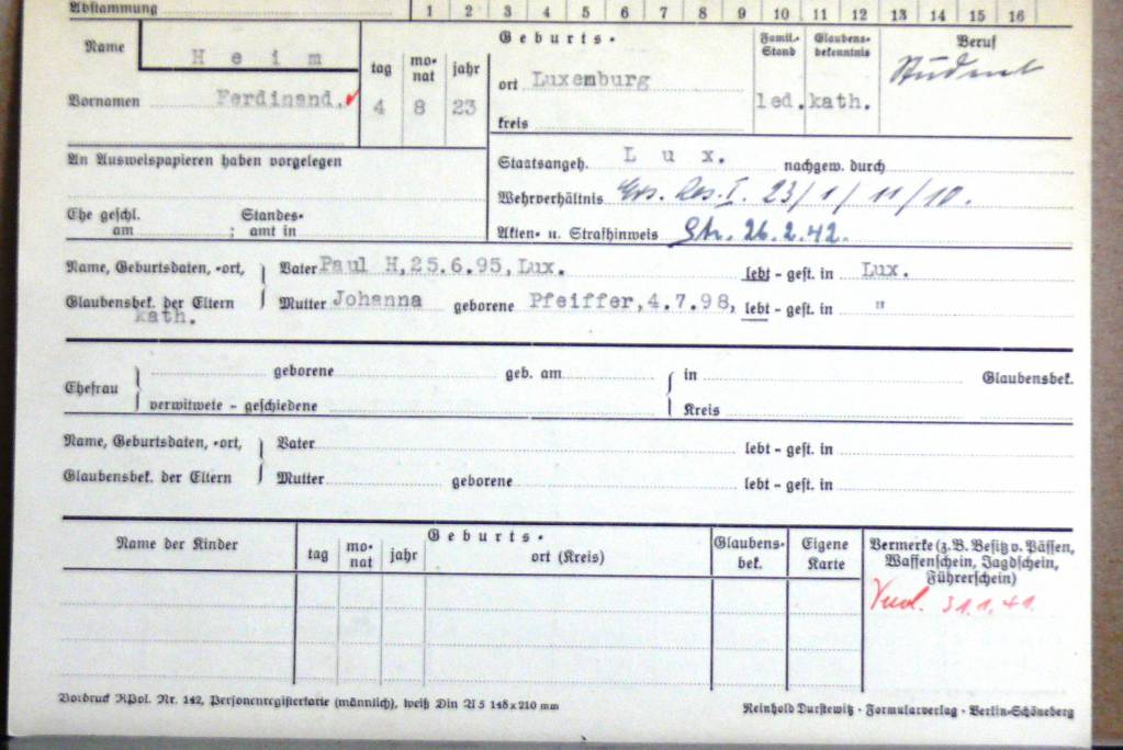 Nom, prénom, nom pendant l'occupation