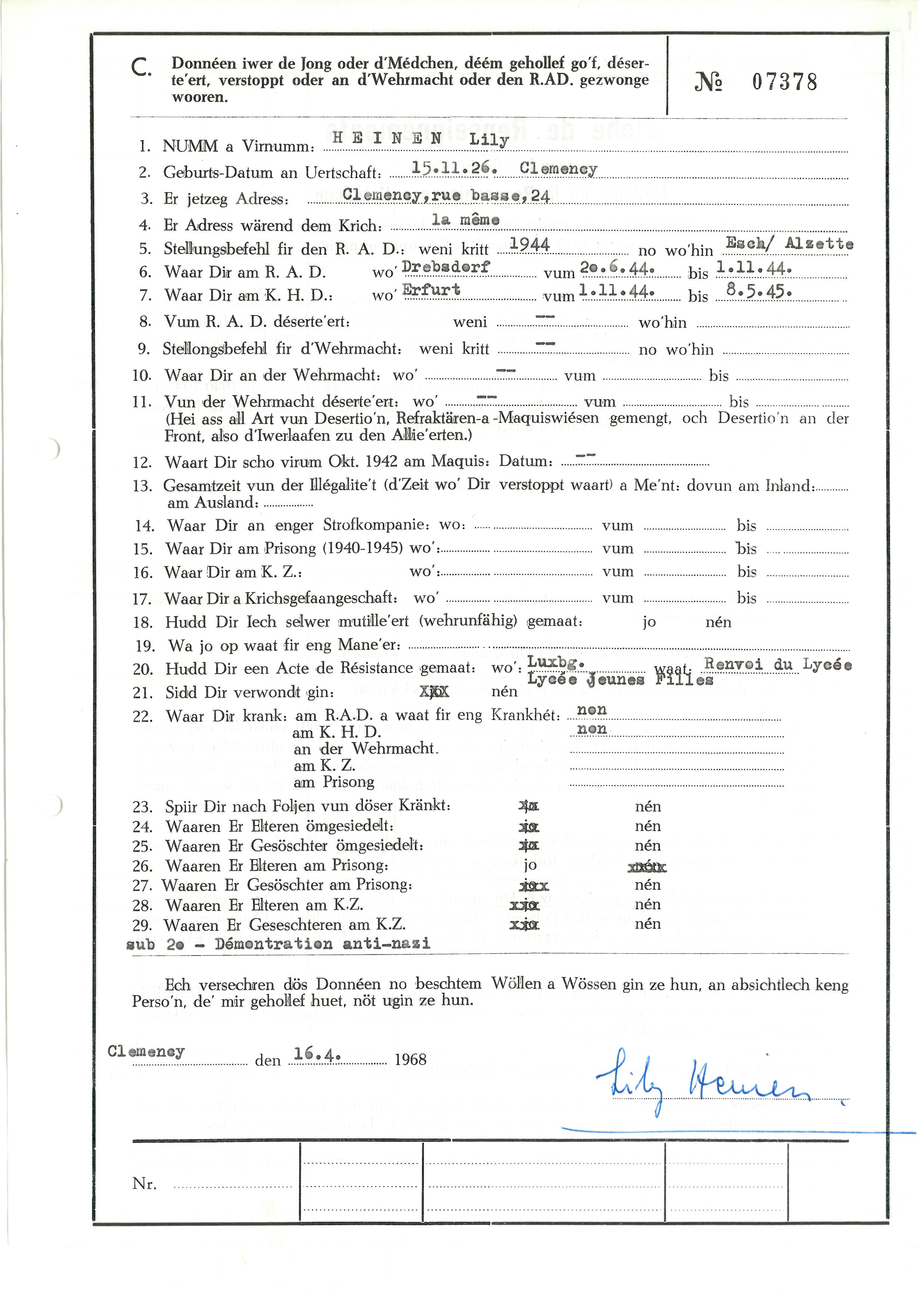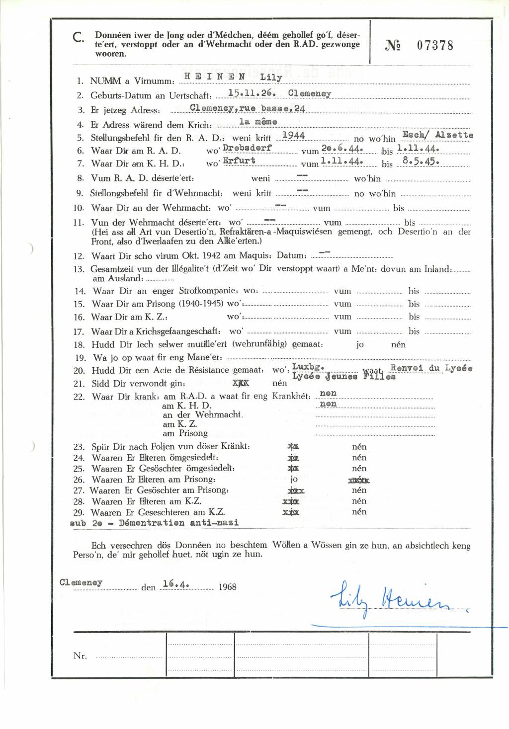 Nom, prénom, nom pendant l'occupation