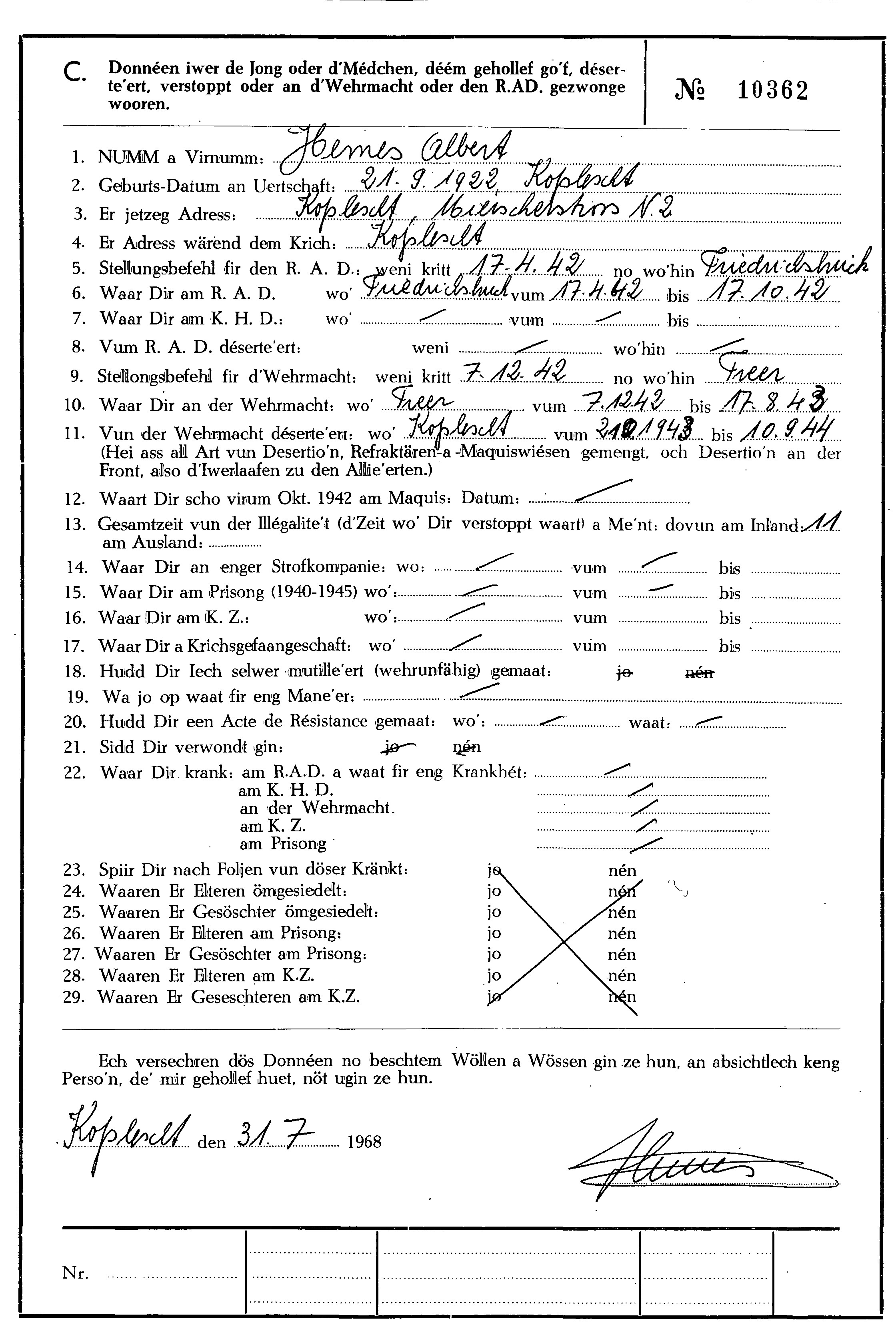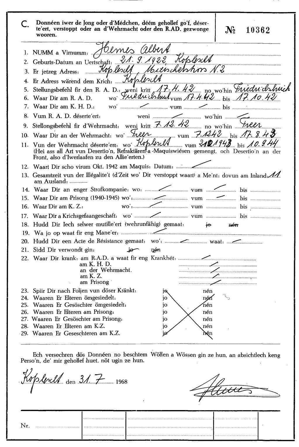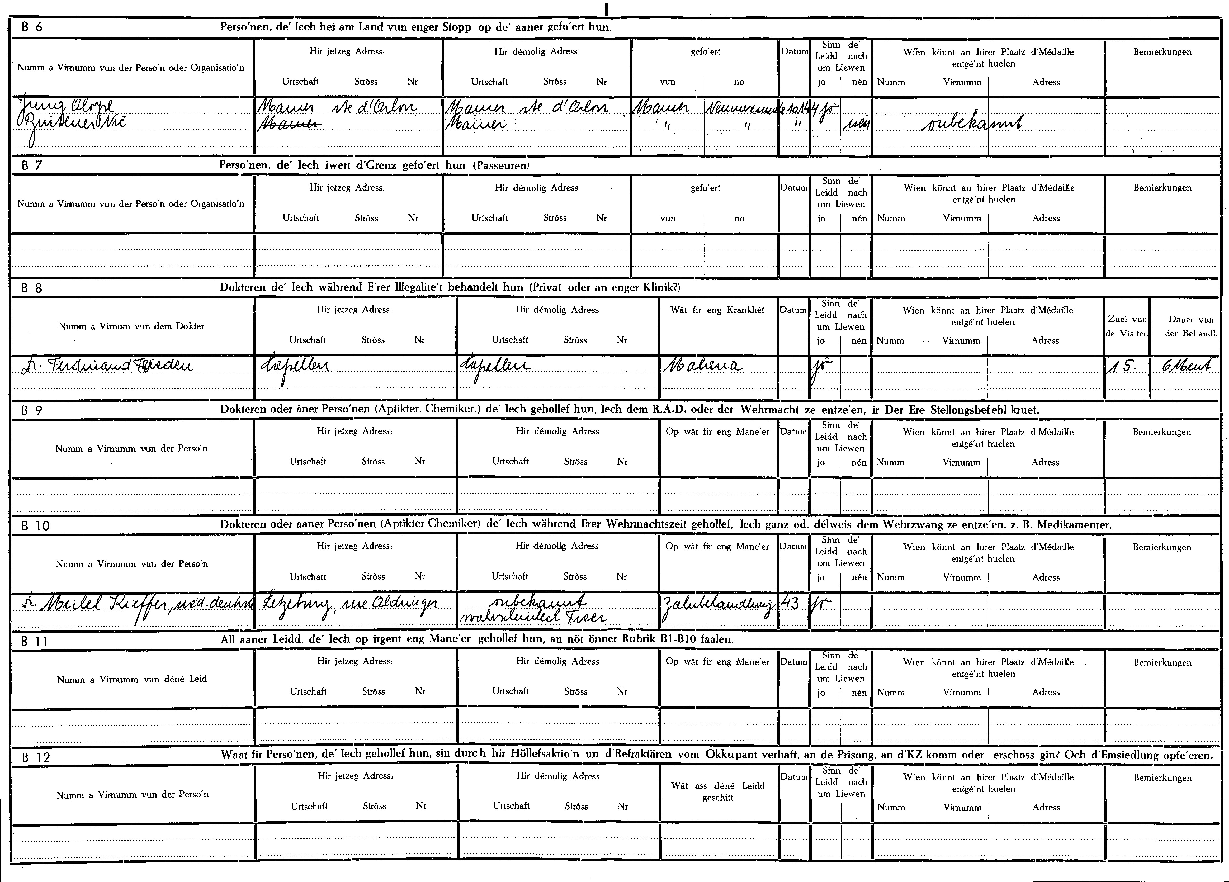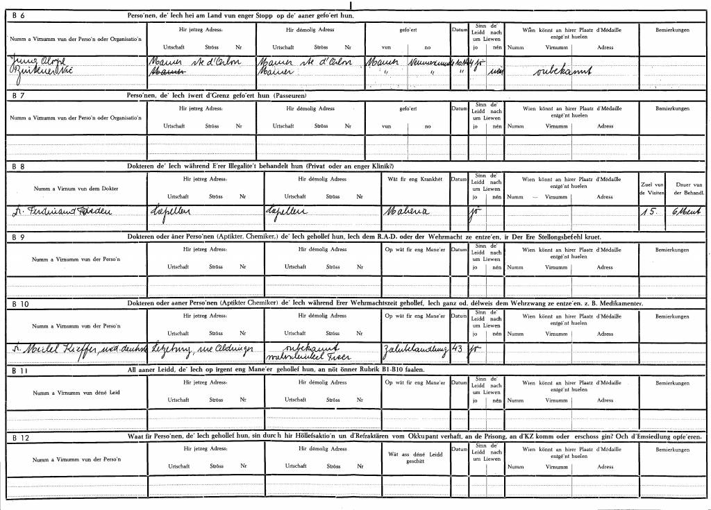 Nom, prénom, nom pendant l'occupation