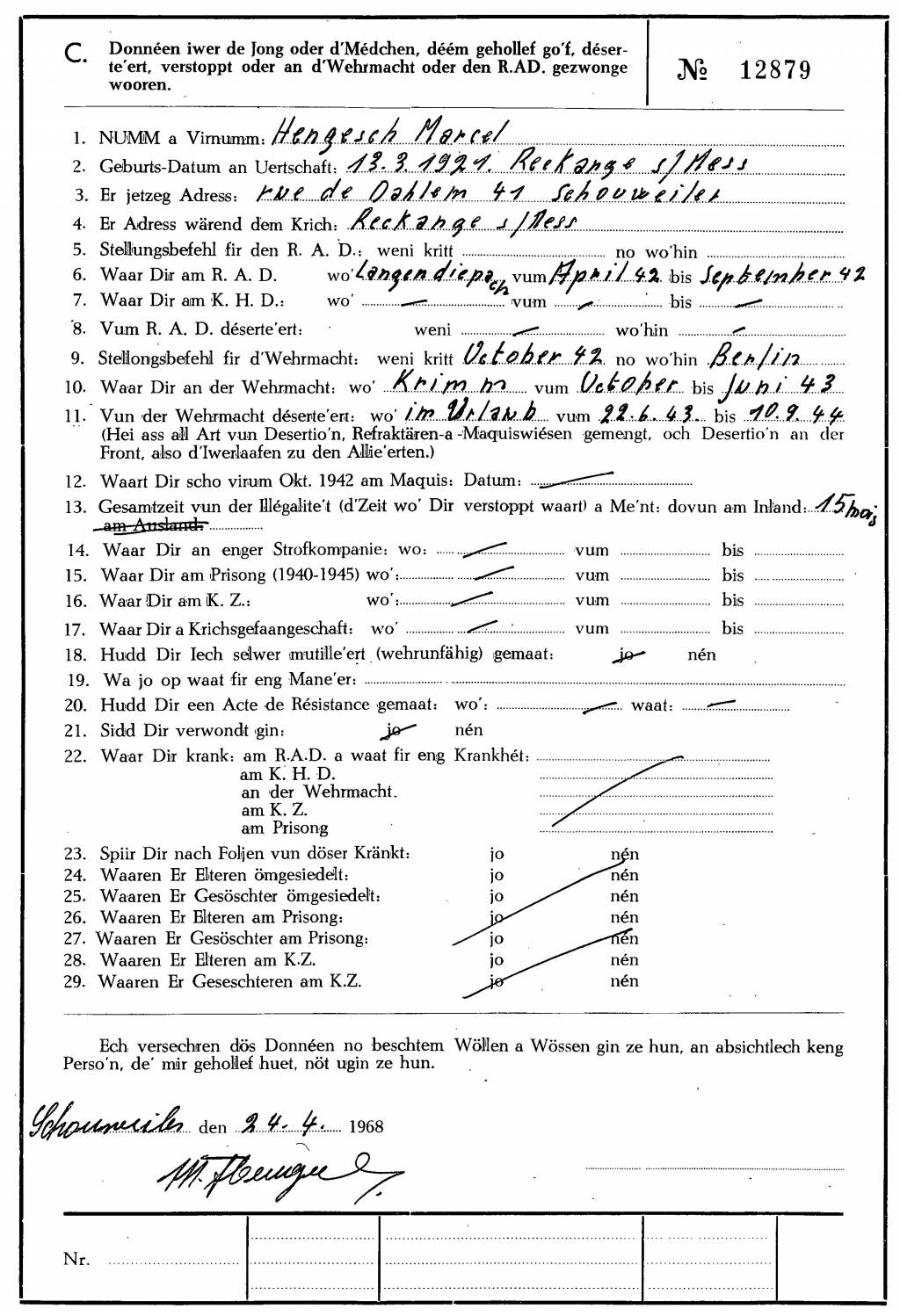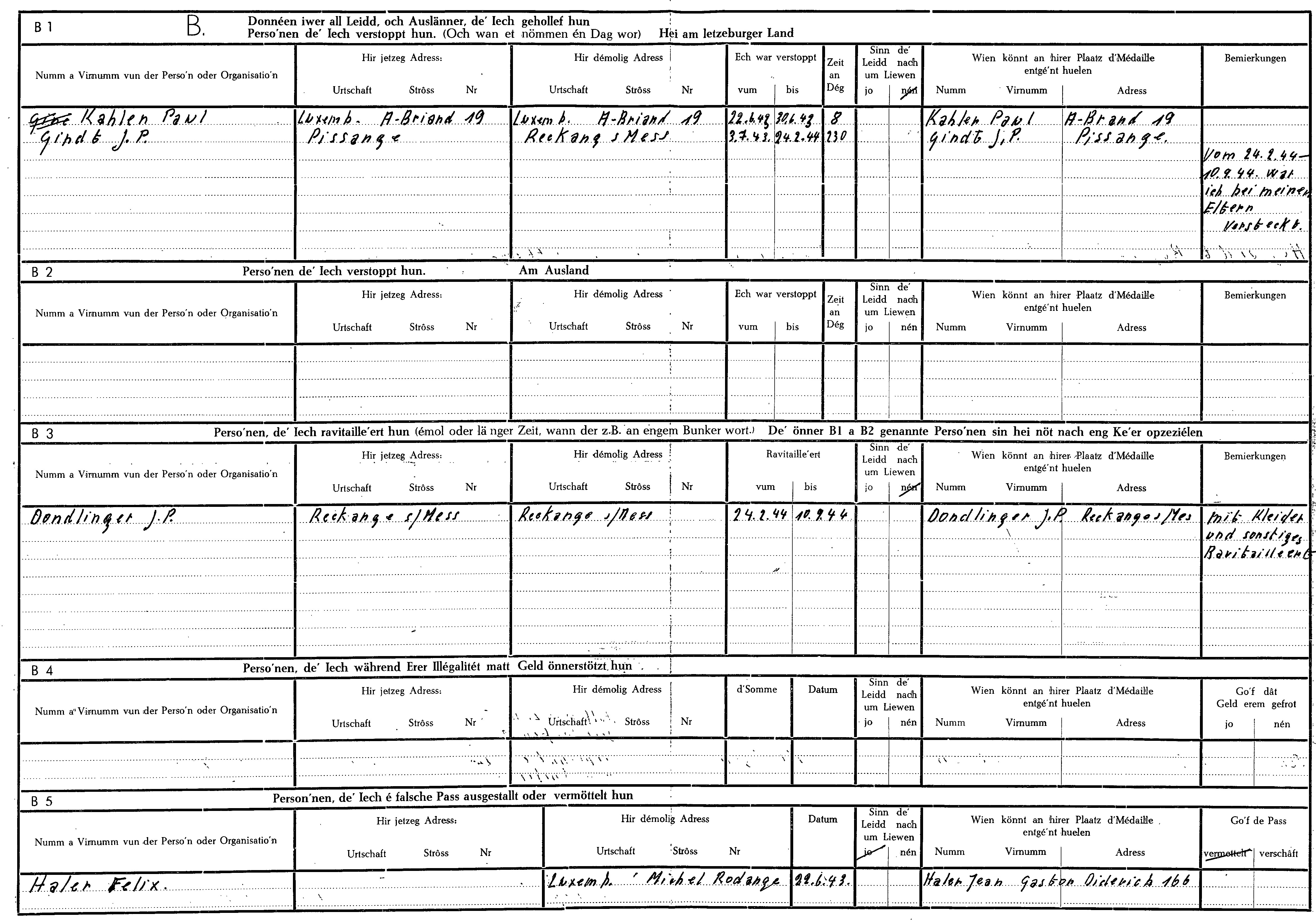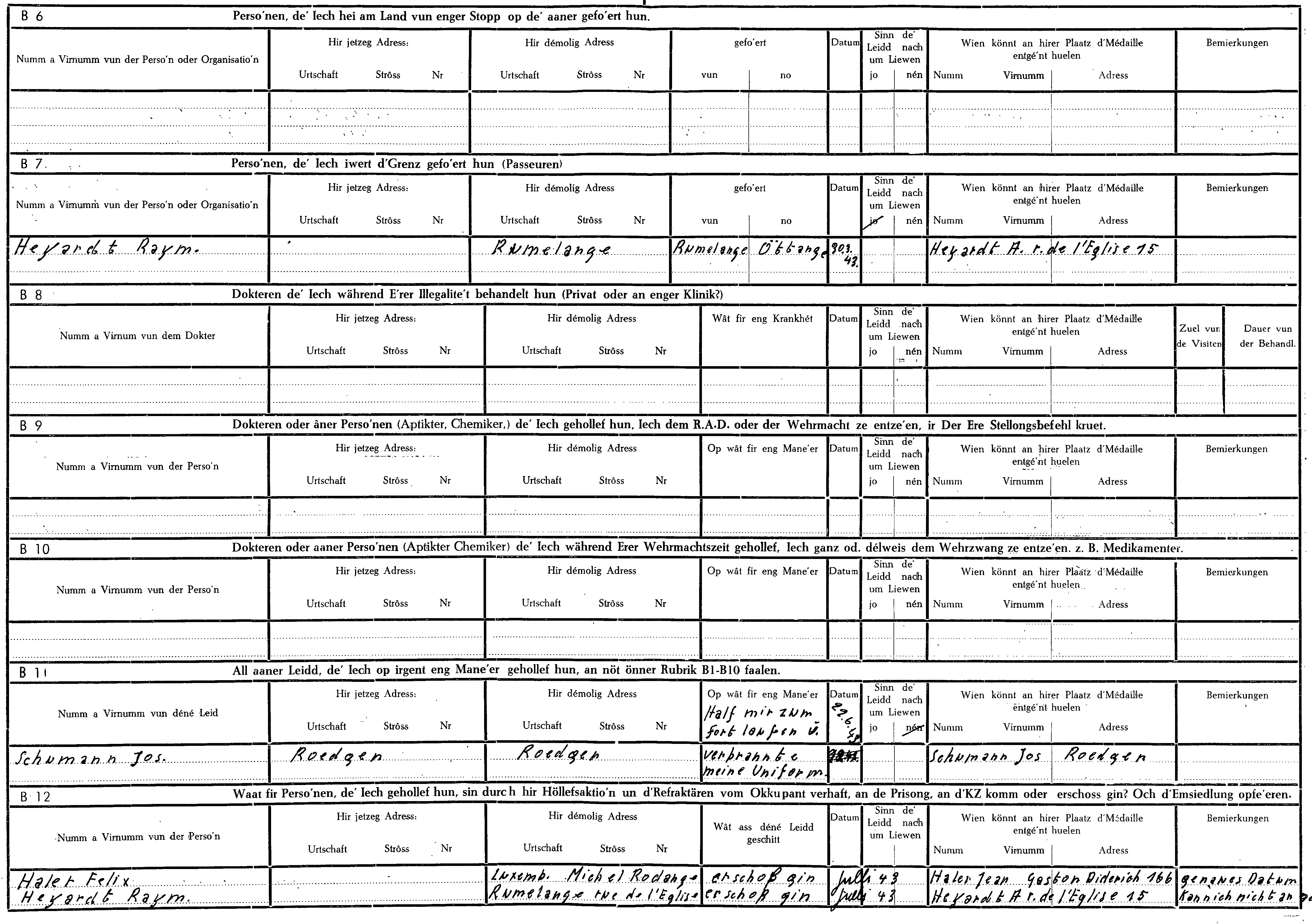 Nom, prénom, nom pendant l'occupation