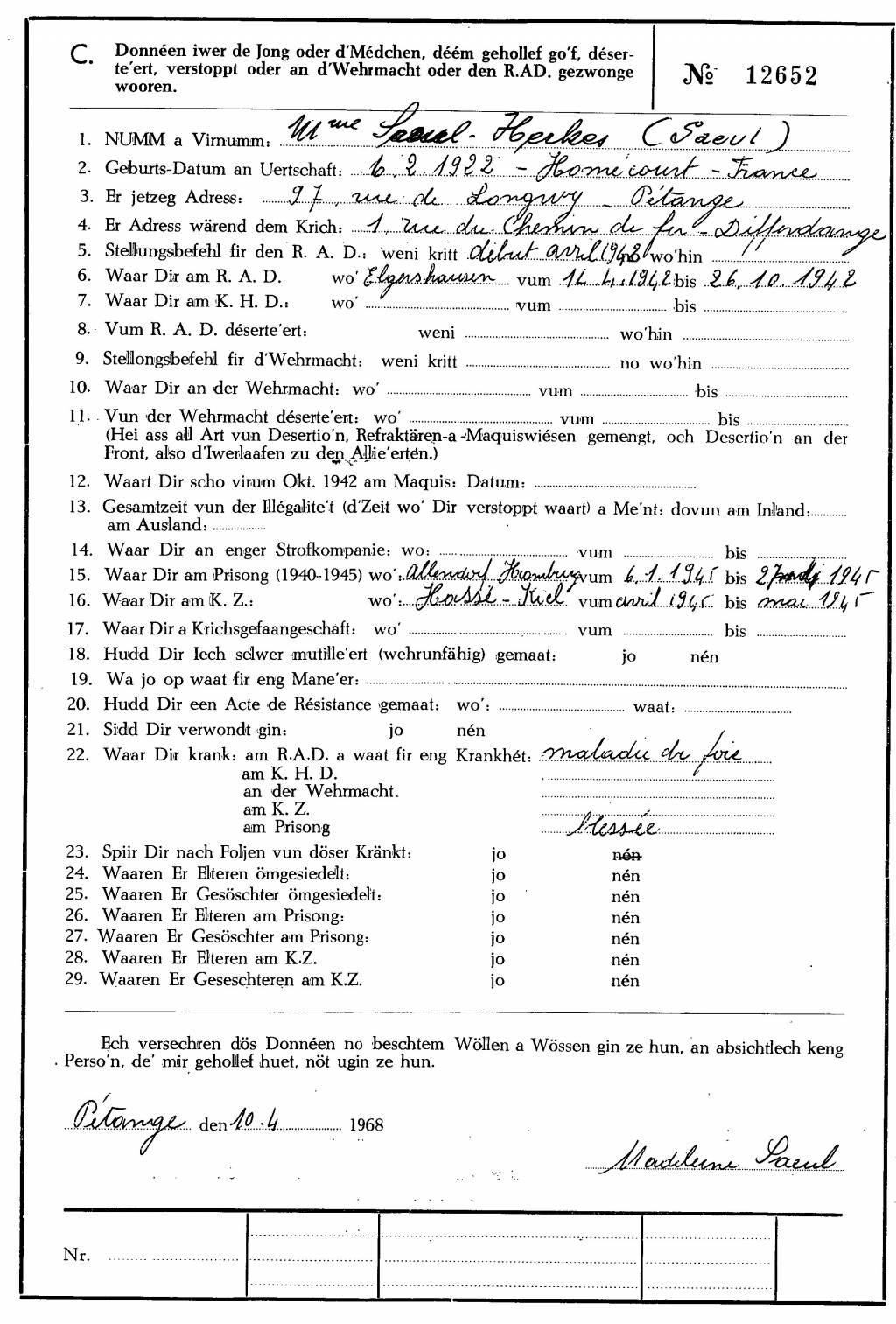 Nom, prénom, nom pendant l'occupation