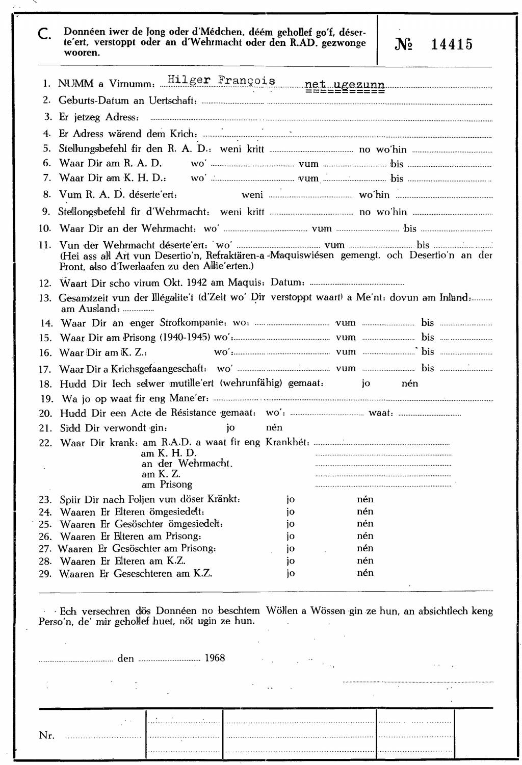 Nom, prénom, nom pendant l'occupation