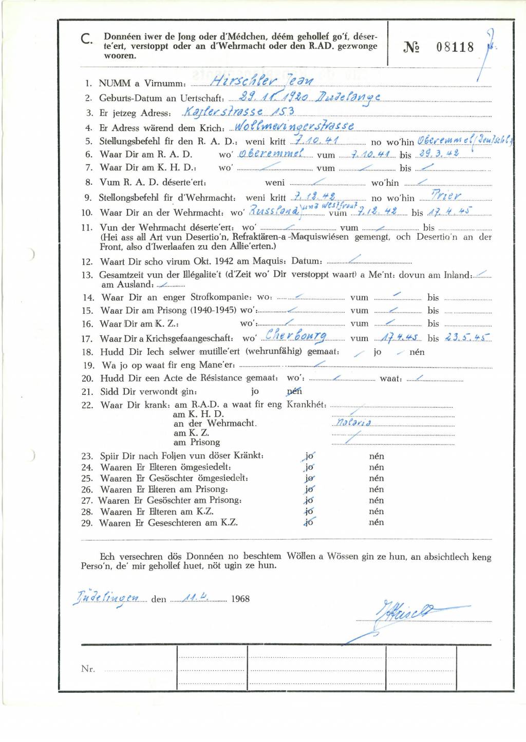 Nom, prénom, nom pendant l'occupation