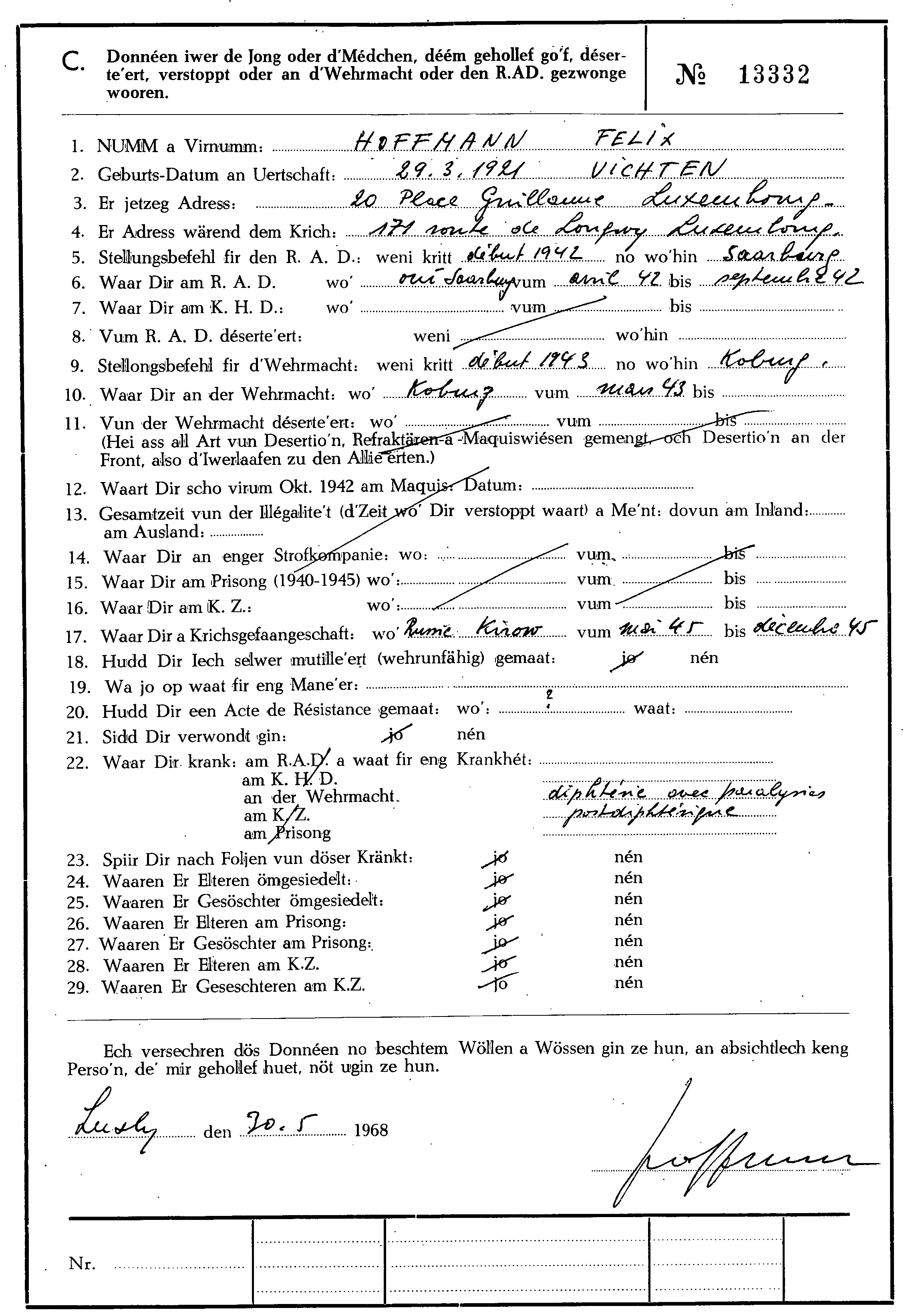 Divers_Hoffmann_Félix Hoffmann_Félix_29031921_Vichten_Gefangenschaft_Russland_Archive_HOLLERICH_2018_A_Hd_Box_60.pdf Télécharger le document LW 05.12.1997.jpg Télécharger le document VIICHTER GESCHITSFREND Nr9 2010 ..JPG Télécharger le document MRN 1.jpg Télécharger le document 2.jpg Télécharger le document 3.jpg Télécharger le document