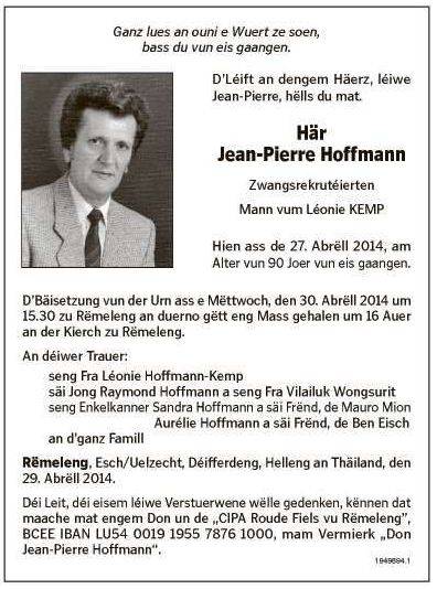 Hoffmann_Jean-Pierre_27051923 Hoffmann_Jean_Pierre_27051923_Schwiedelbrouch_27042014.jpg Télécharger le document Hoffmann_Jean-Pierre_27051923_1.jpg Télécharger le document MRN 1.jpg Télécharger le document 2.jpg Télécharger le document 3.jpg Télécharger le document Rammerich 1983 00000001.JPG Télécharger le document 00000006.JPG Télécharger le document