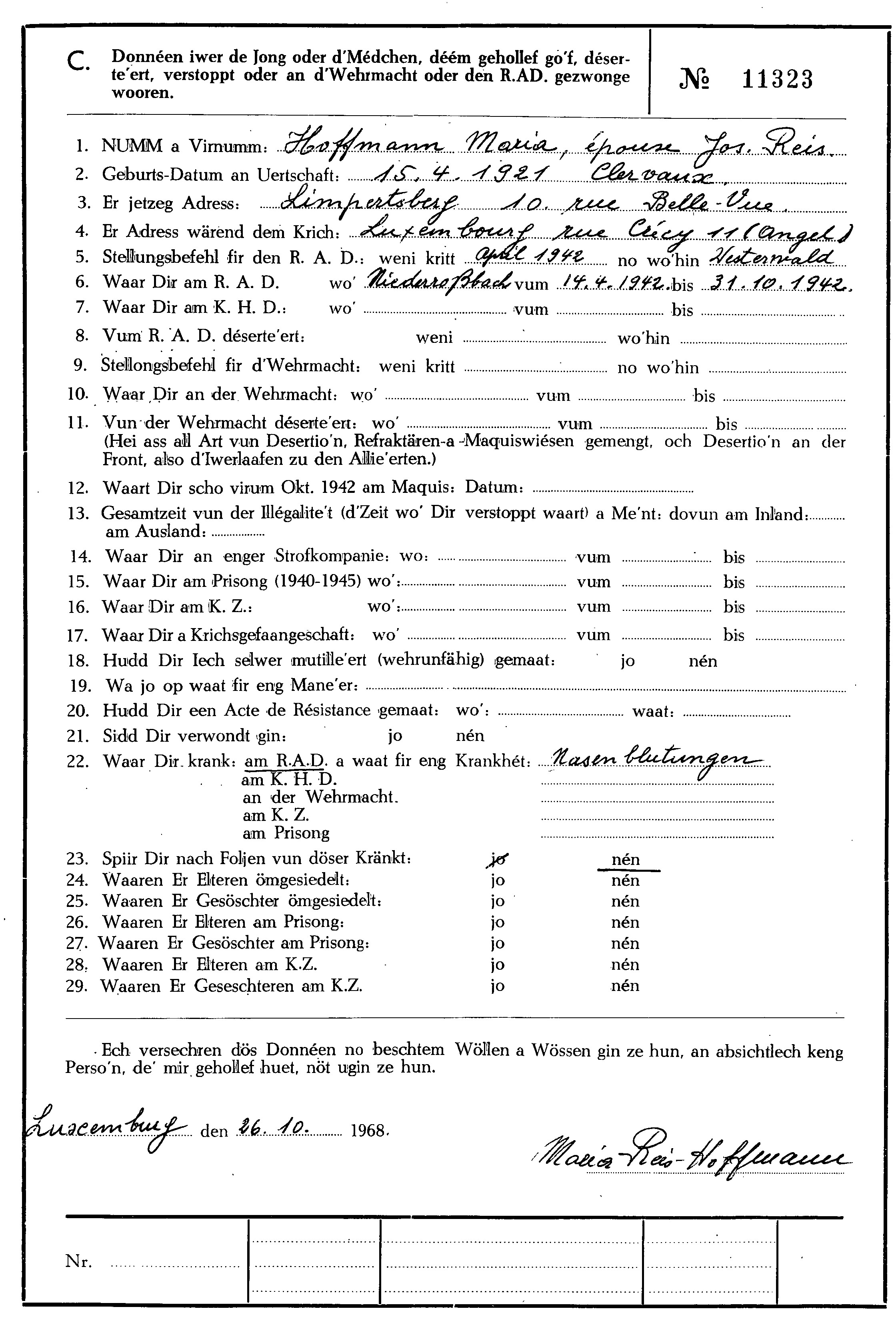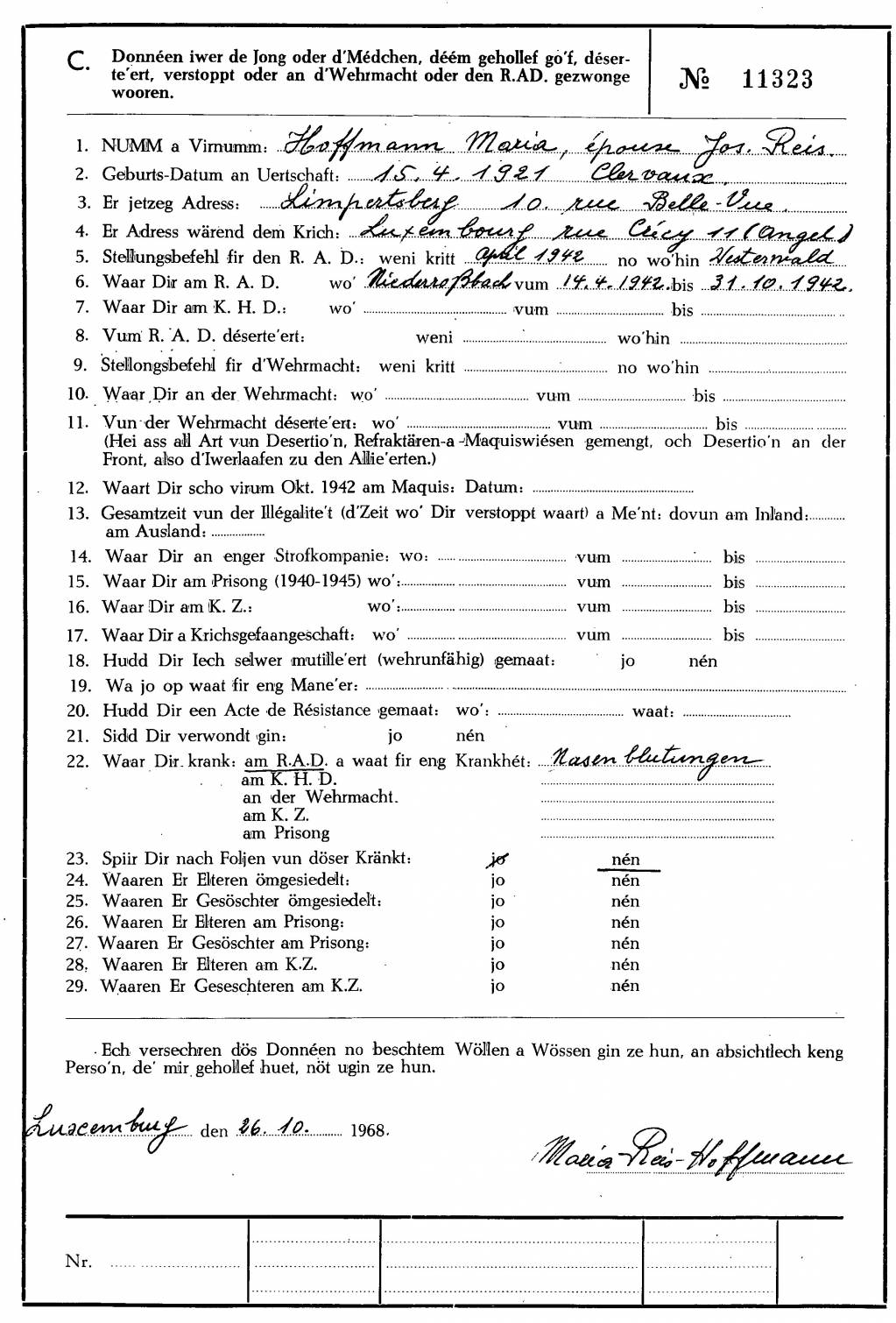 Nom, prénom, nom pendant l'occupation