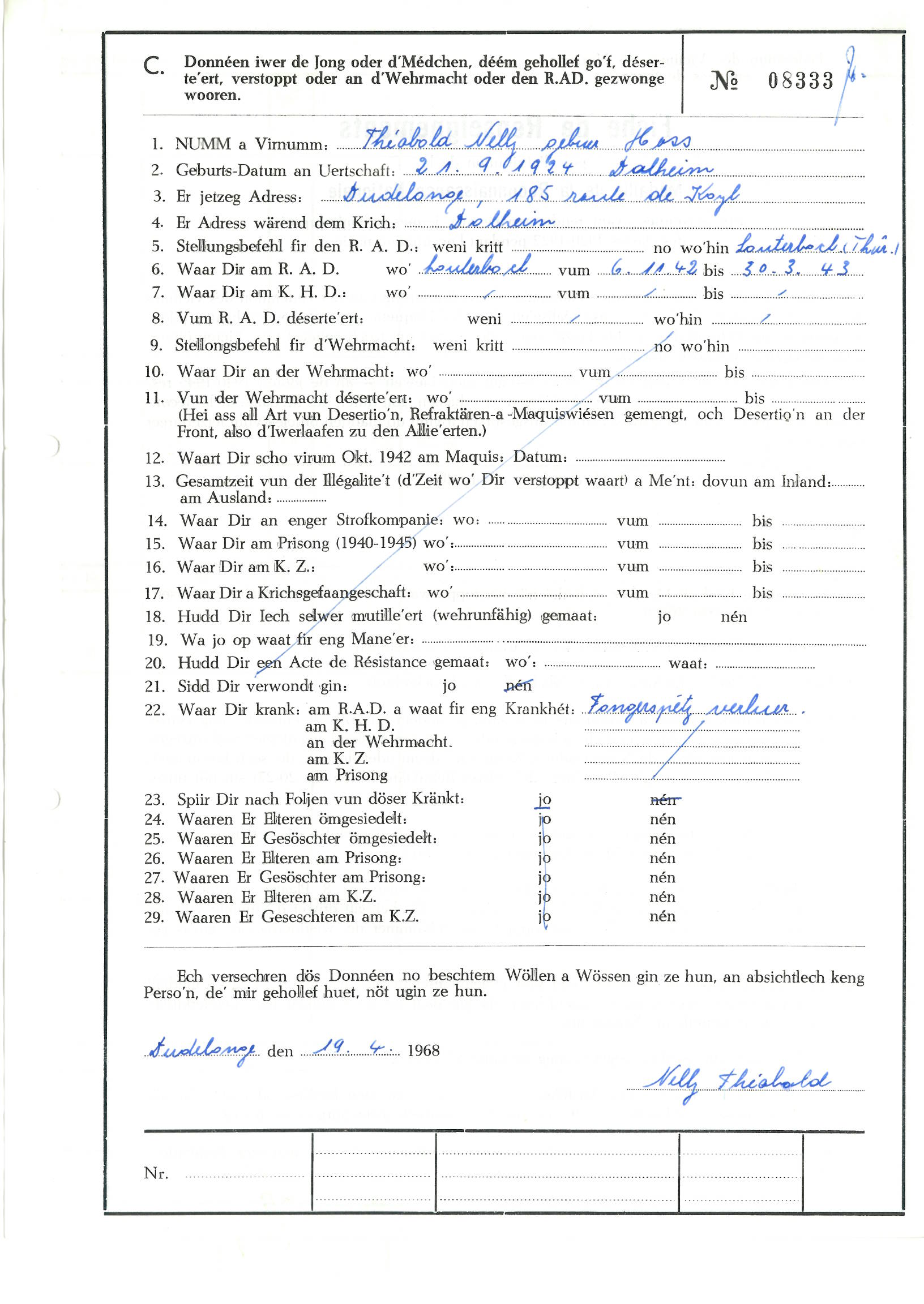 Hoss épouse Théobold Nelly