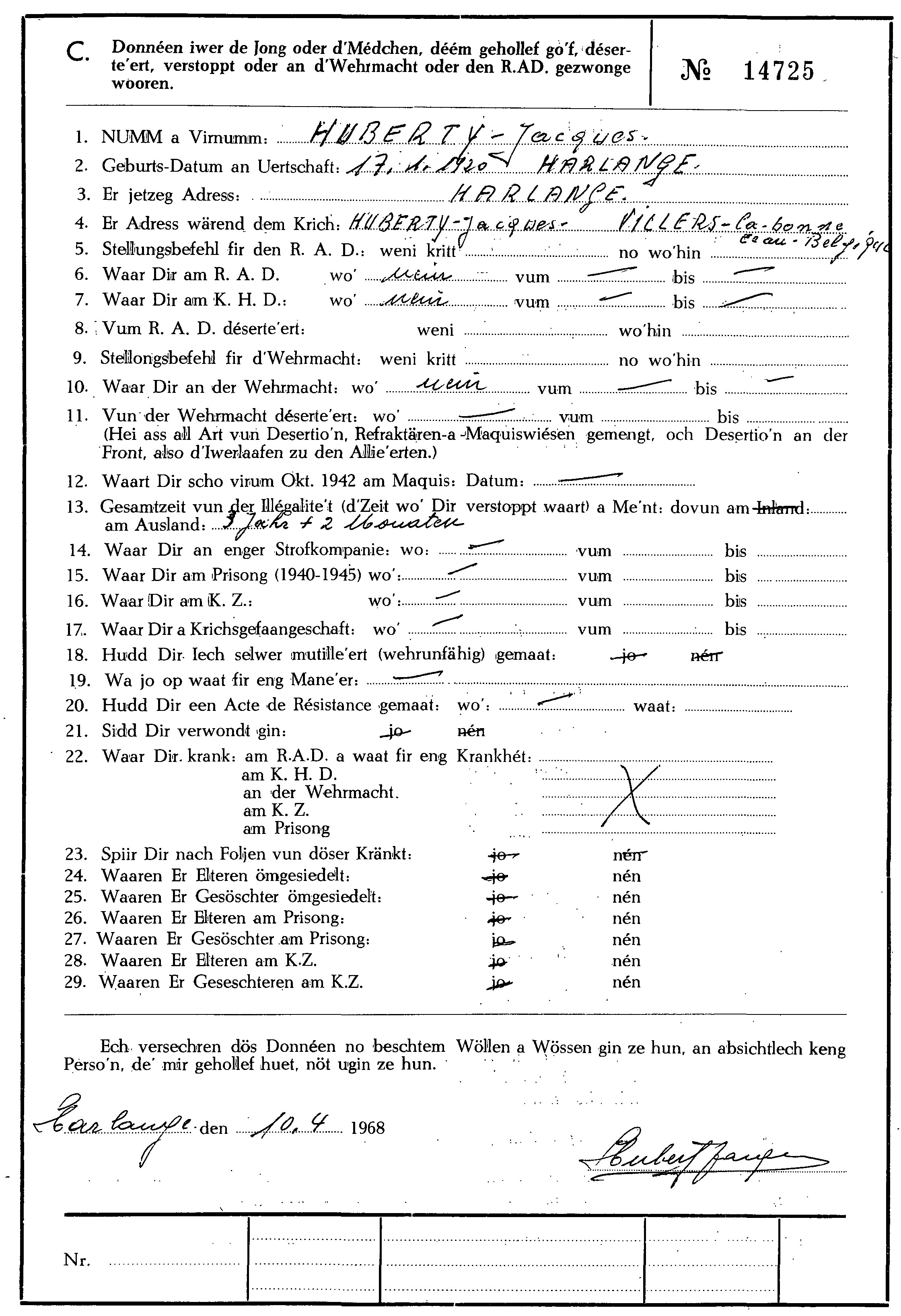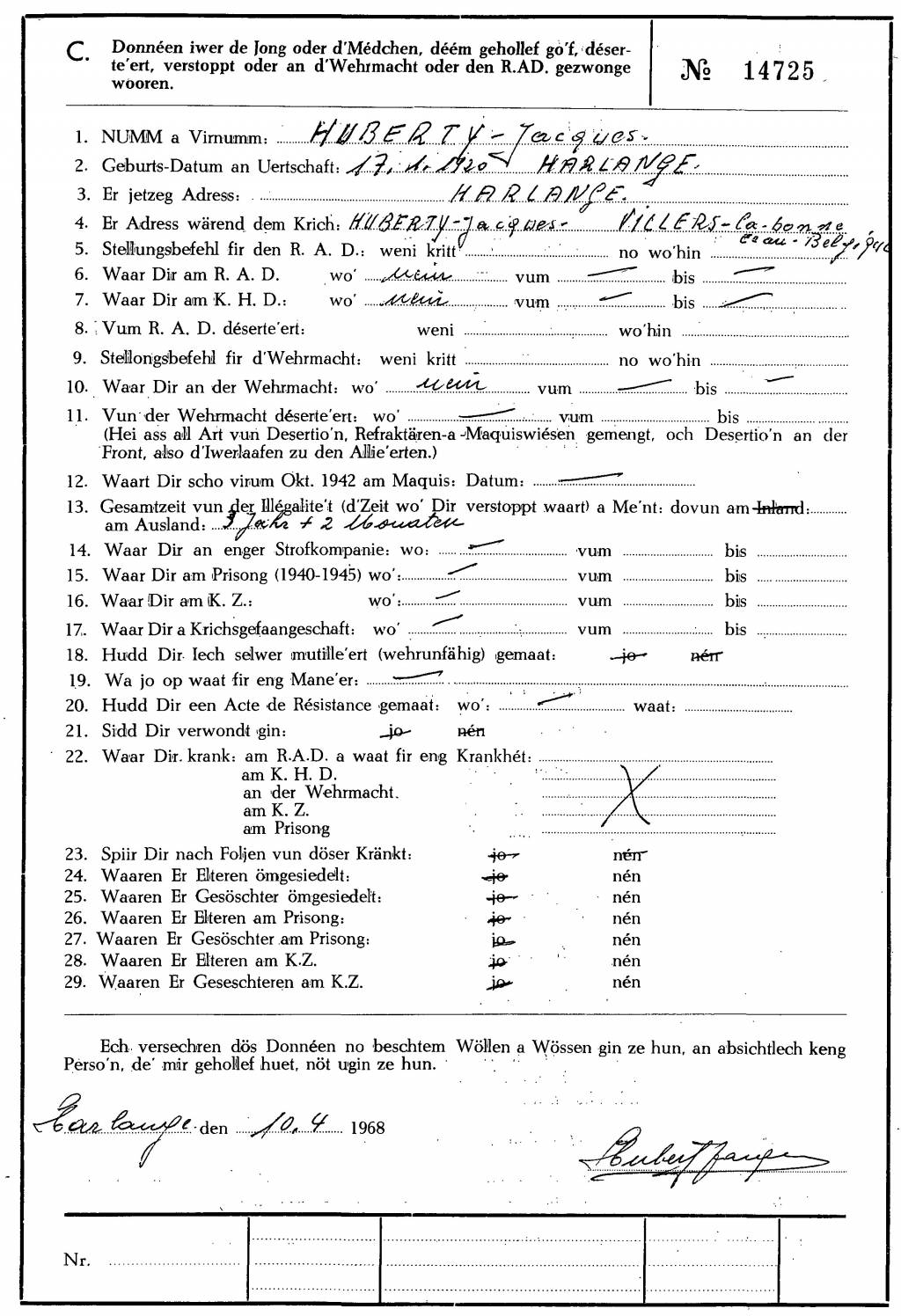 Nom, prénom, nom pendant l'occupation